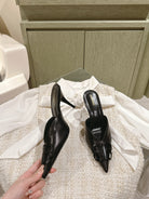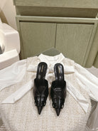 POINTED BB BLACK BUCKLE HIGH MULES IN BLACK SMOOTH LAMBSKIN