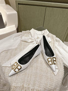 POINTED BB GOLD BUCKLE BALLET FLAT IN WHITE SHINY LAMBSKIN
