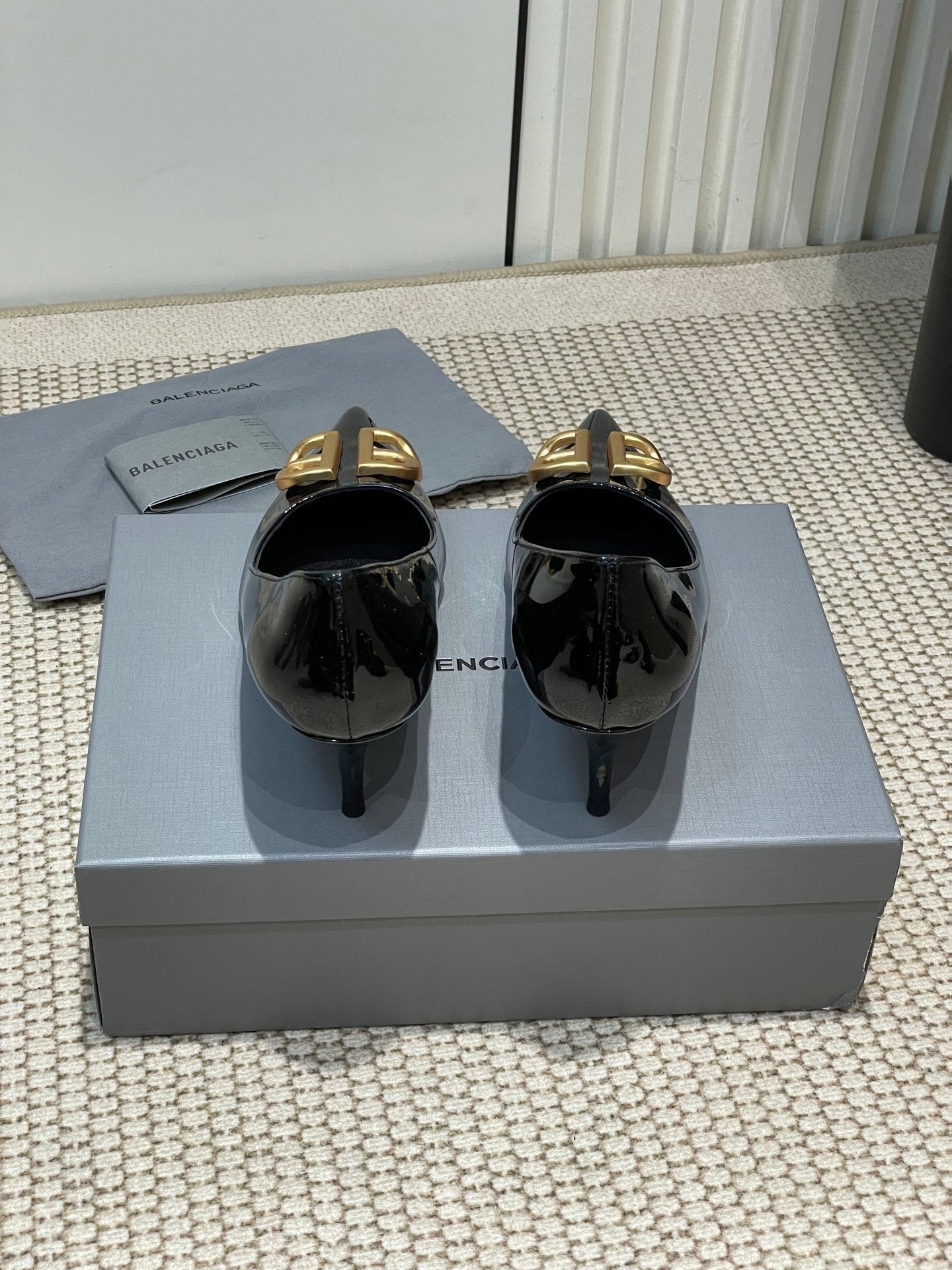 POINTED BB GOLD BUCKLE HIGH PUMPS 60MM IN BLACK PATENT CALFSKIN