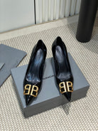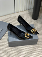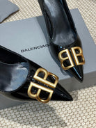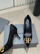 POINTED BB GOLD BUCKLE HIGH PUMPS 80MM IN BLACK PATENT CALFSKIN