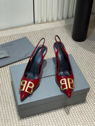 POINTED BB GOLD BUCKLE HIGH SLINGBACK 80MM IN RED PATENT CALFSKIN