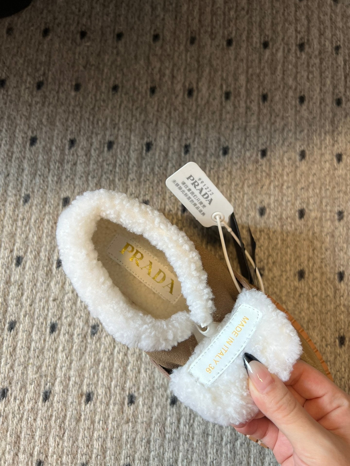 Prada 25s platform ankle boots light brown suede and wool 538440