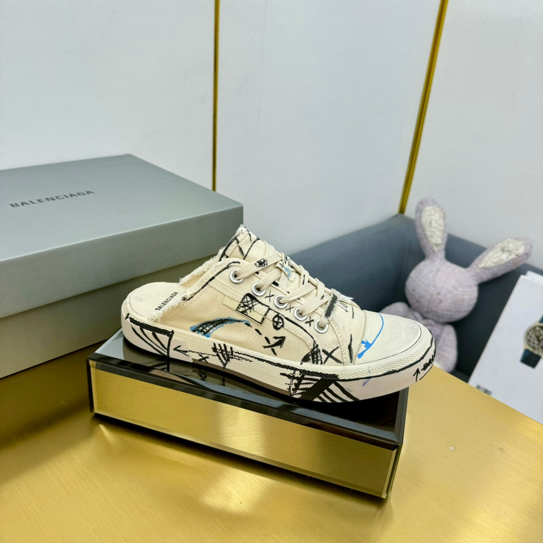 SKETCH SNEAKER MULES IN BEIGE CANVAS