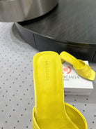 SQUARE-TOE MEDIUM HEEL MULES IN YELLOW CALFSKIN LOGO EMBOSSED