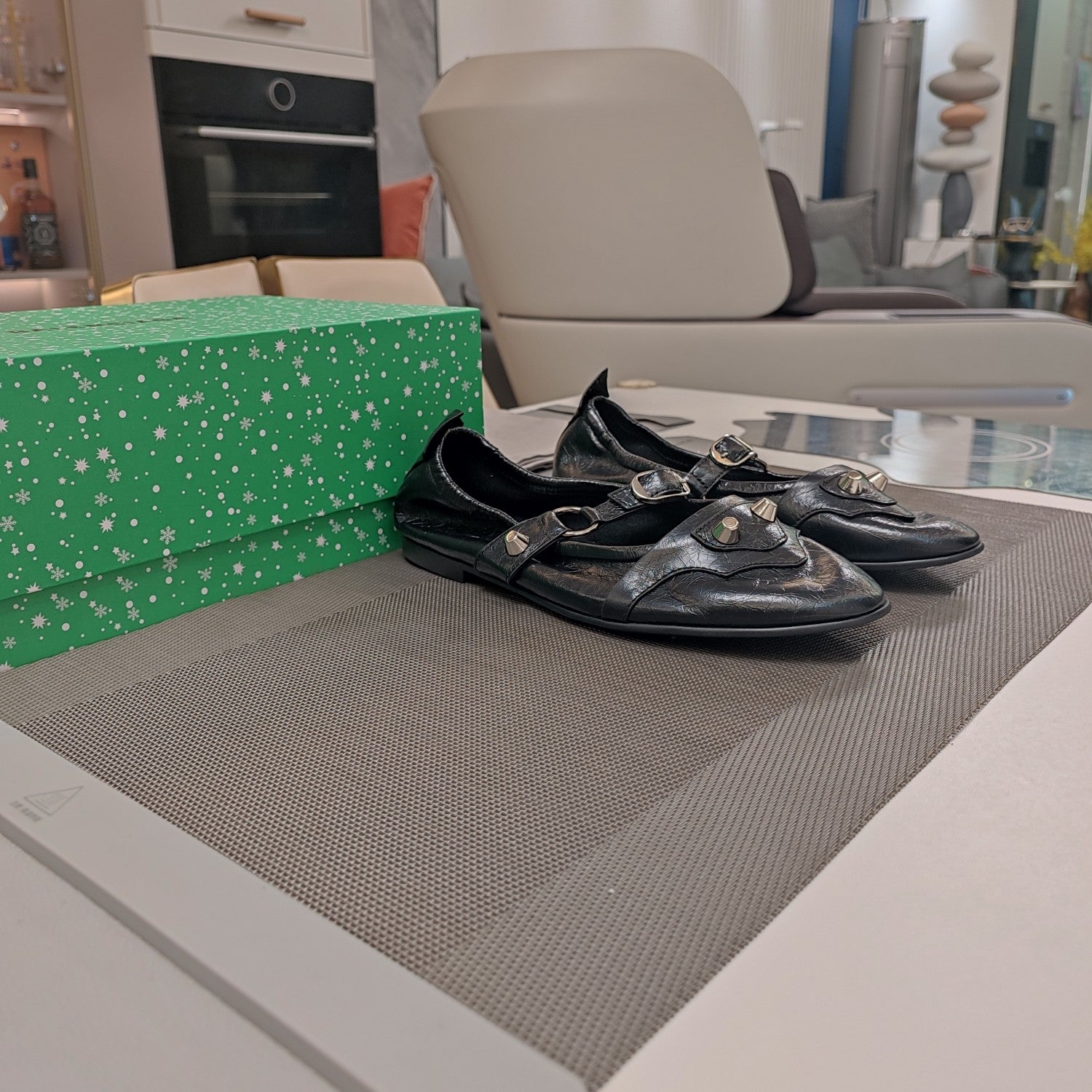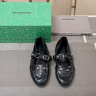 STUDDED MARY JANE FLATS IN BLACK SHINY LAMBSKIN