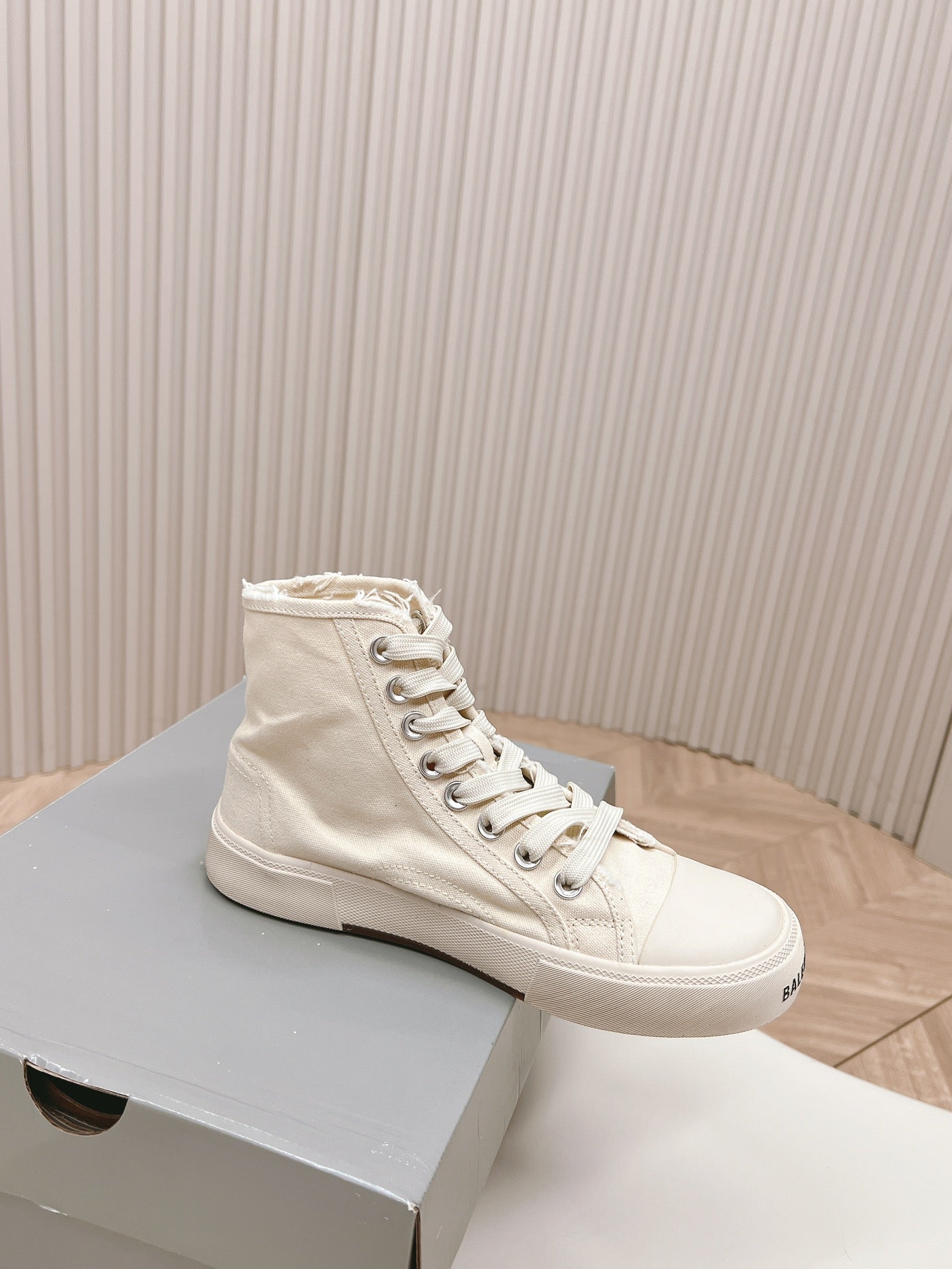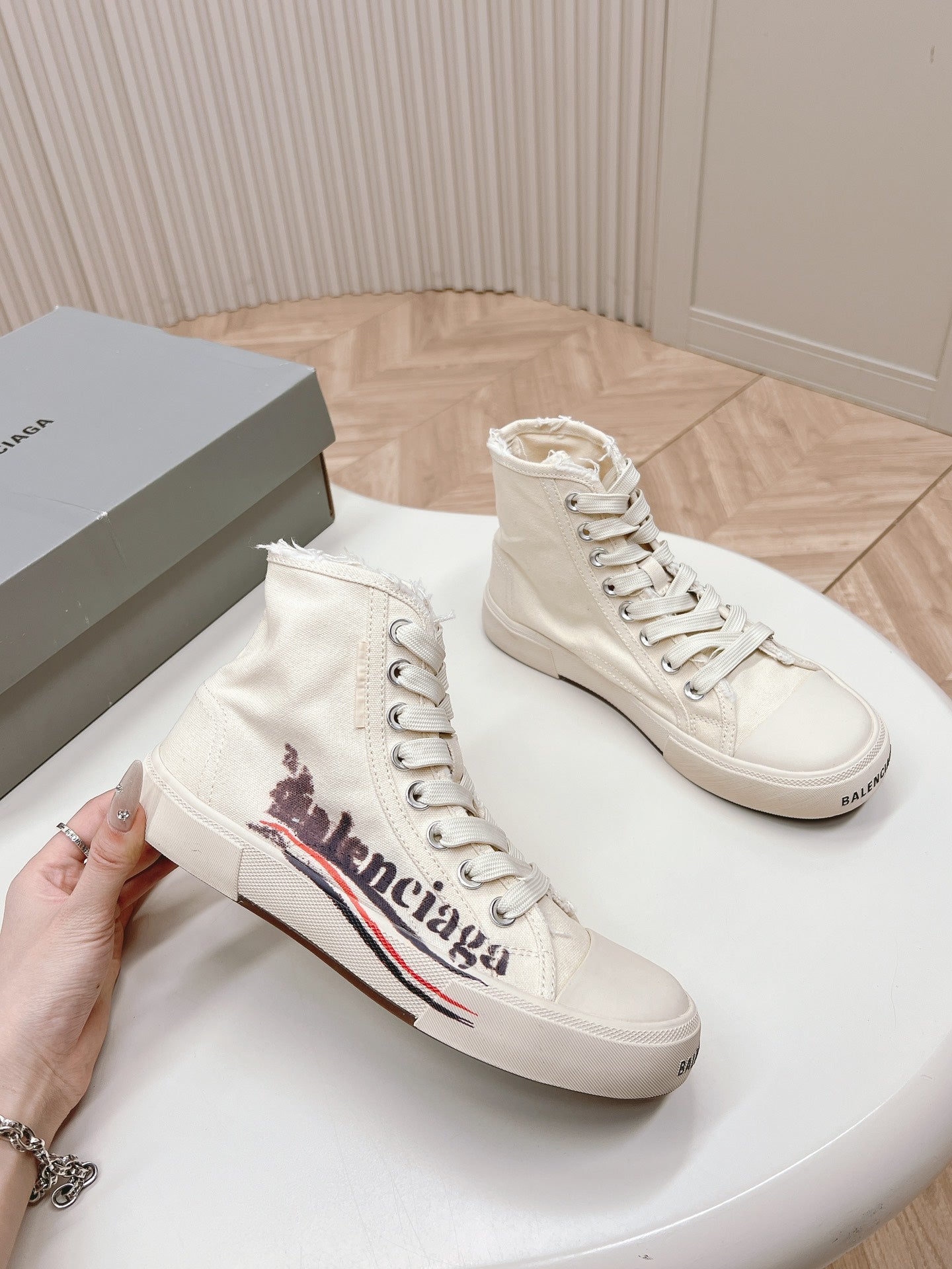 WHITE CANVAS HIGH-TOP SNEAKERS LOGO GRAFFITI