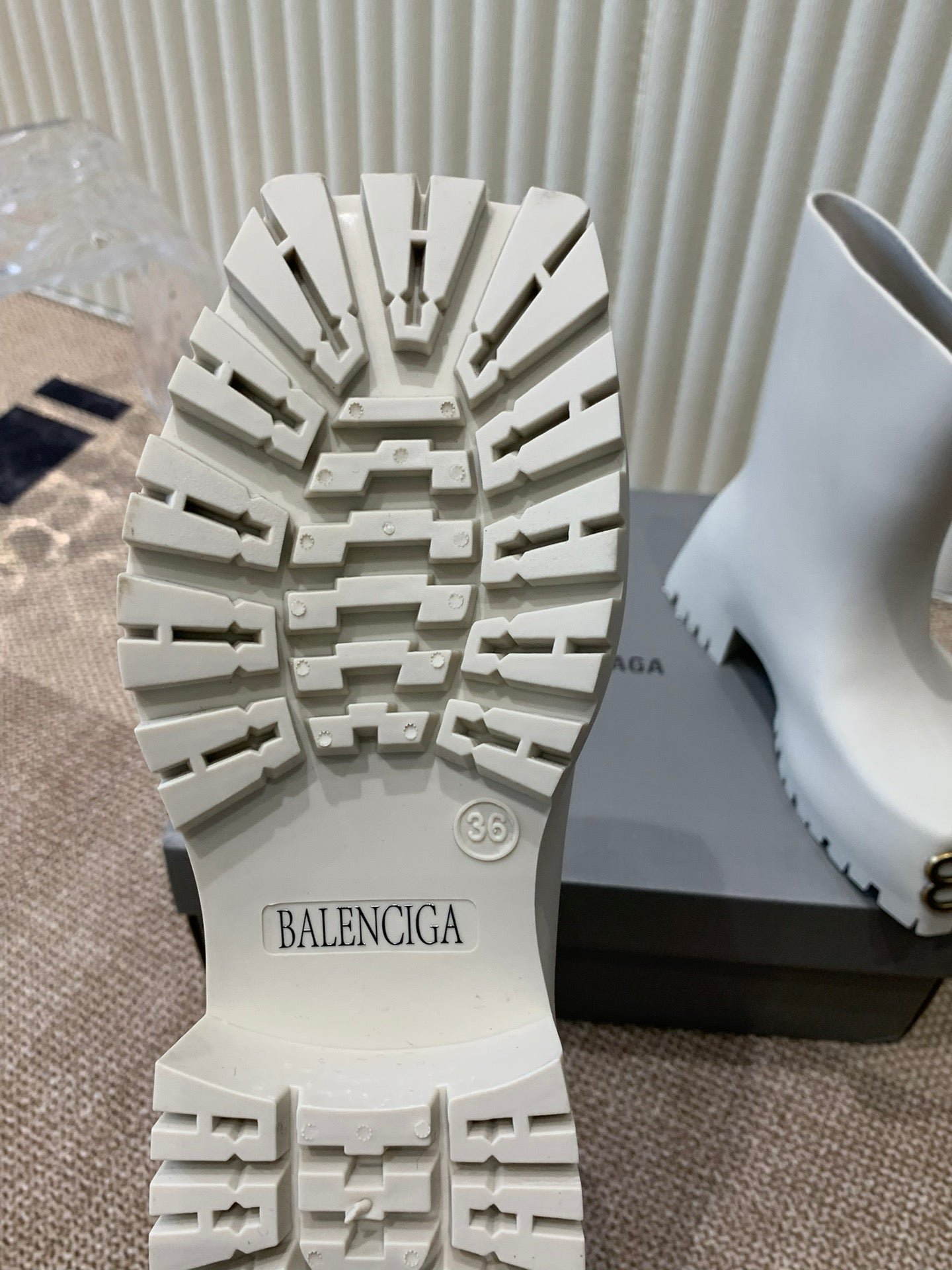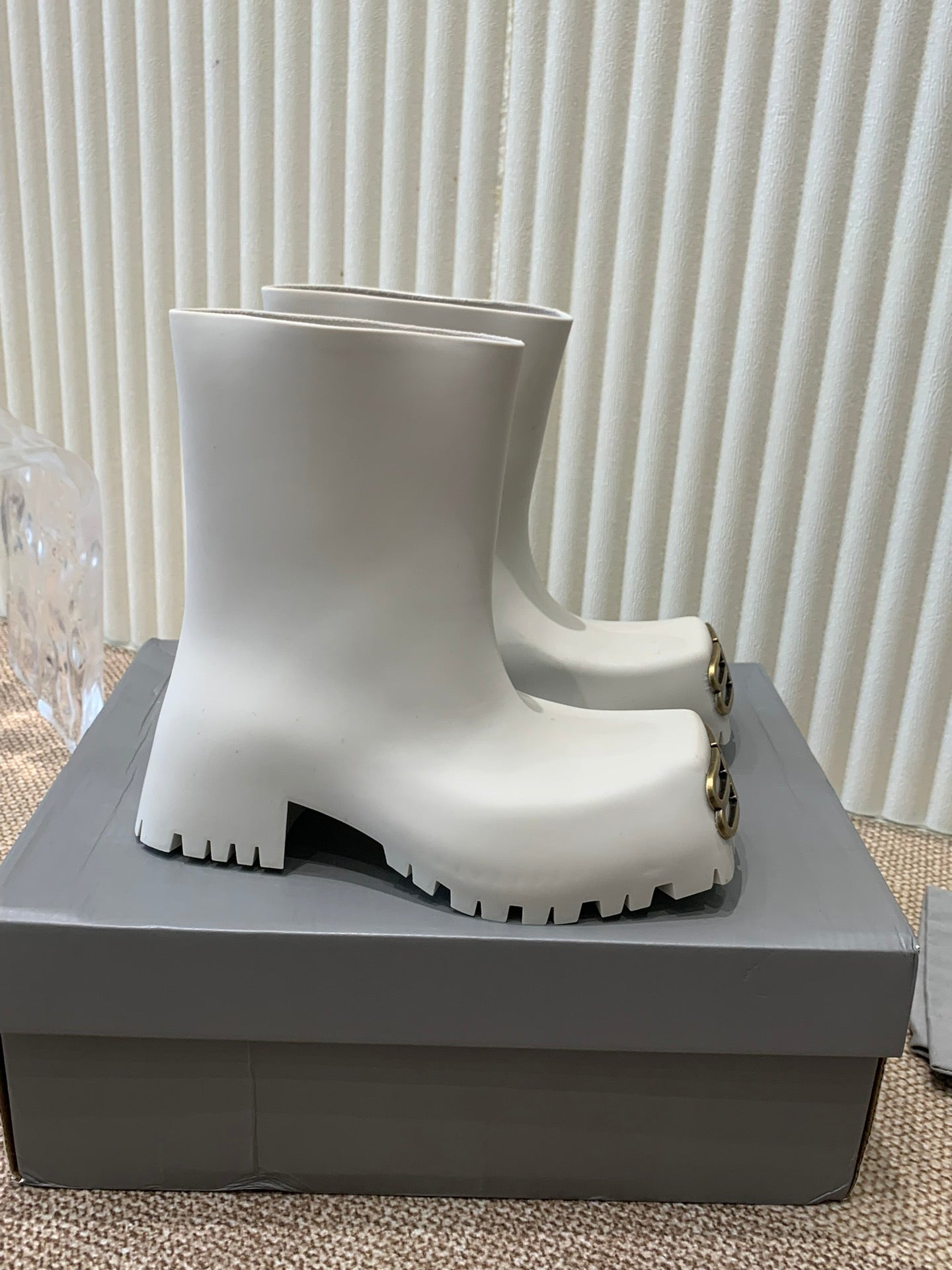 WHITE SCULPTED RUBBER BOOTS WITH GOLD MONOGRAM