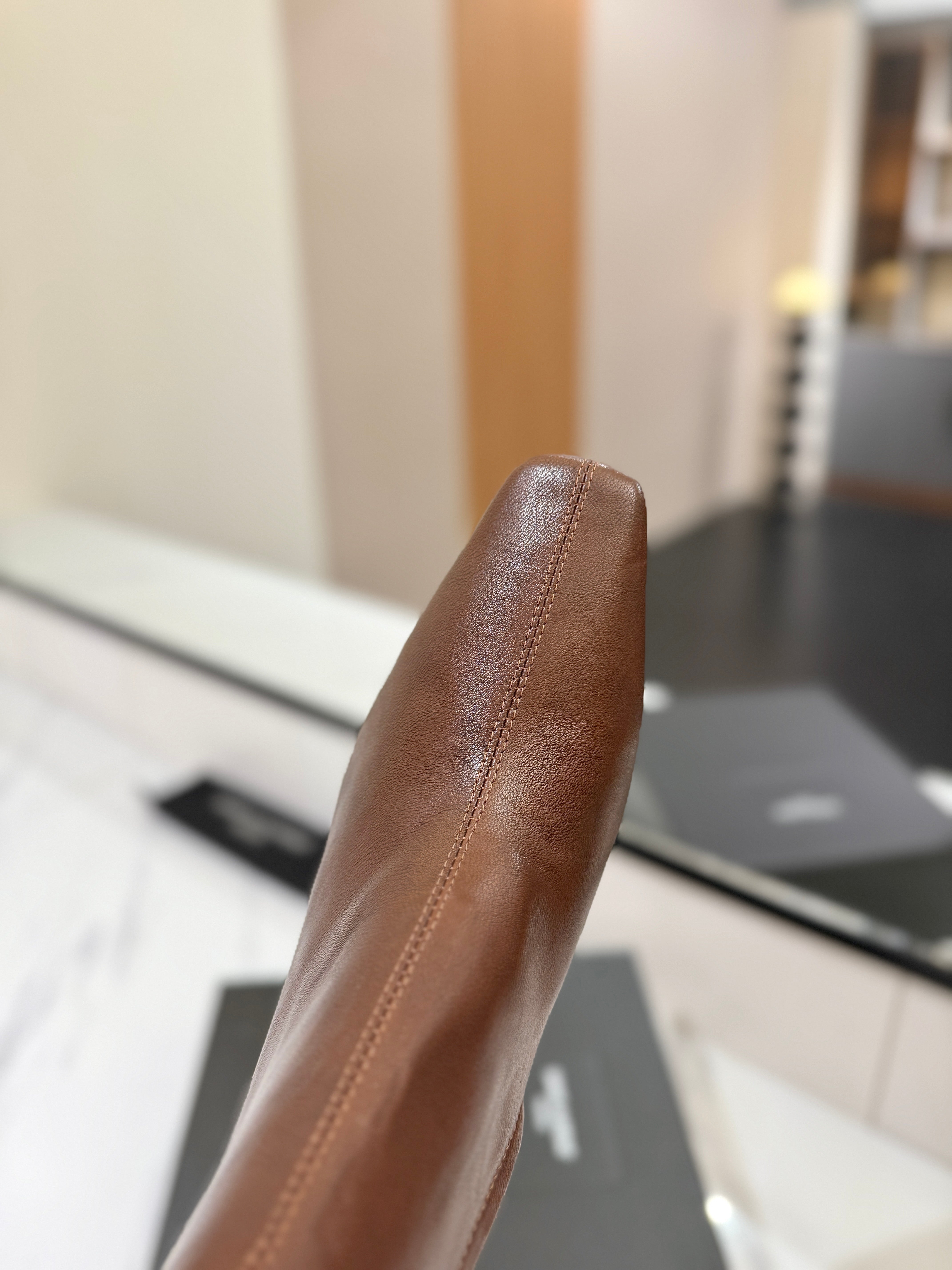 YSL 25 High-heeled Boot Brown Cowhide 520776