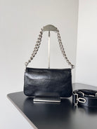 BB SOFT FLAP BAG 25 IN BLACK PEACH CALFSKIN SILVER HARDWARE