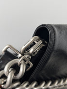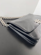 BB SOFT FLAP BAG 36 IN BLACK PEACH CALFSKIN SILVER HARDWARE