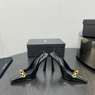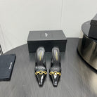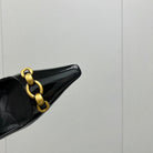GOLD CHAIN ATTACHED HIGH SLINGBACK IN BLACK GLOSSY CALFSKIN