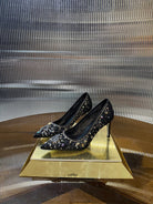 RC 25C Crystal Pearl Gem Lace High Heels Black Sheepskin 275754