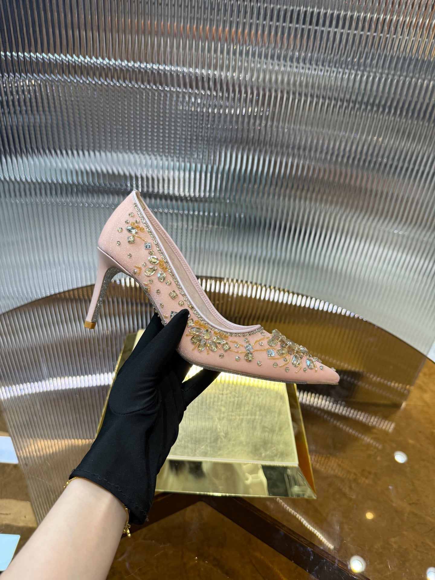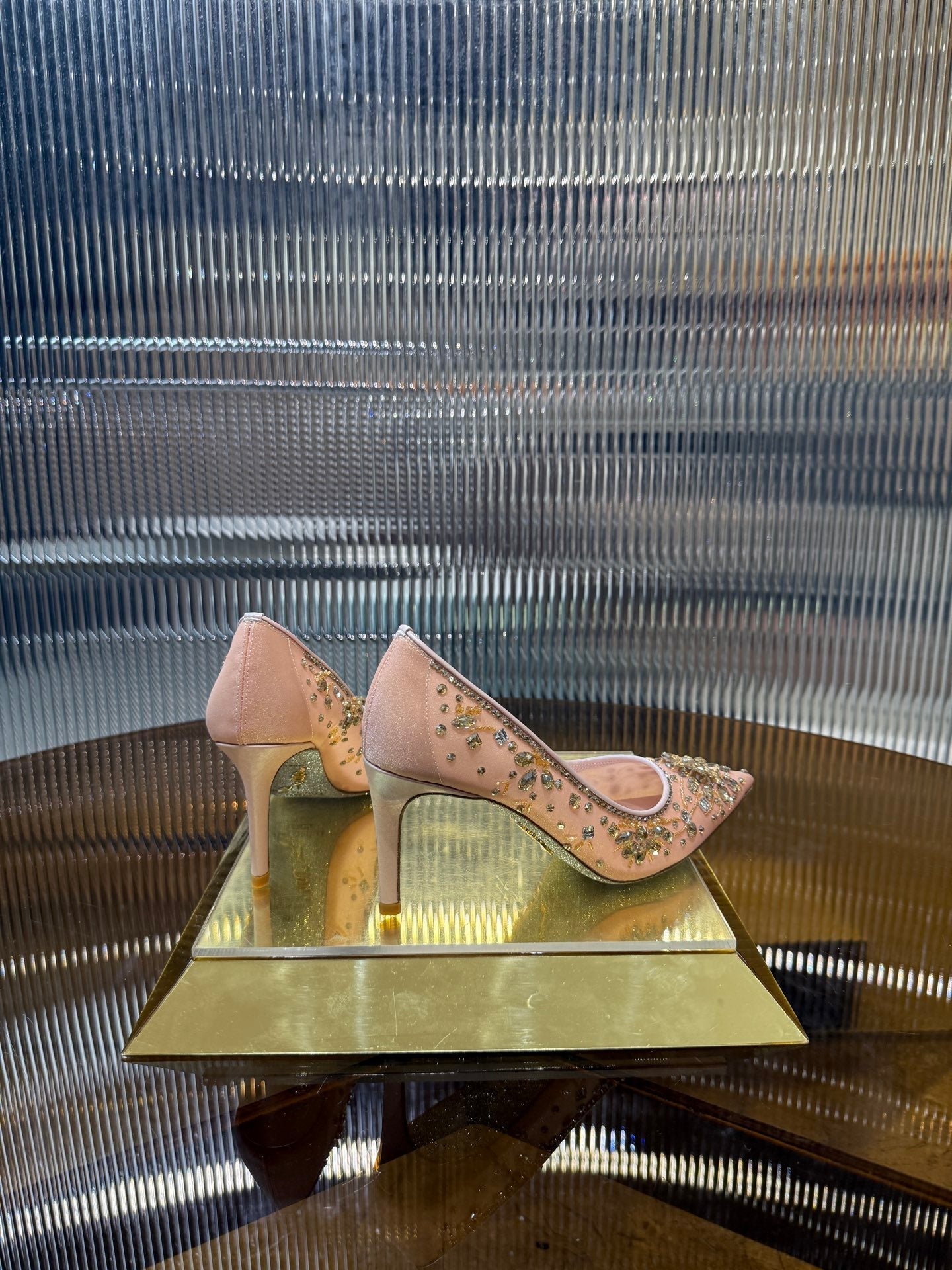 RC 25C Diamond High Heels Wedding Shoes Pink Sheepskin Rhinestone 275791