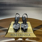RC 25C Flower-Studded Diamond High-Heeled Sandals Black Sheepskin 174909