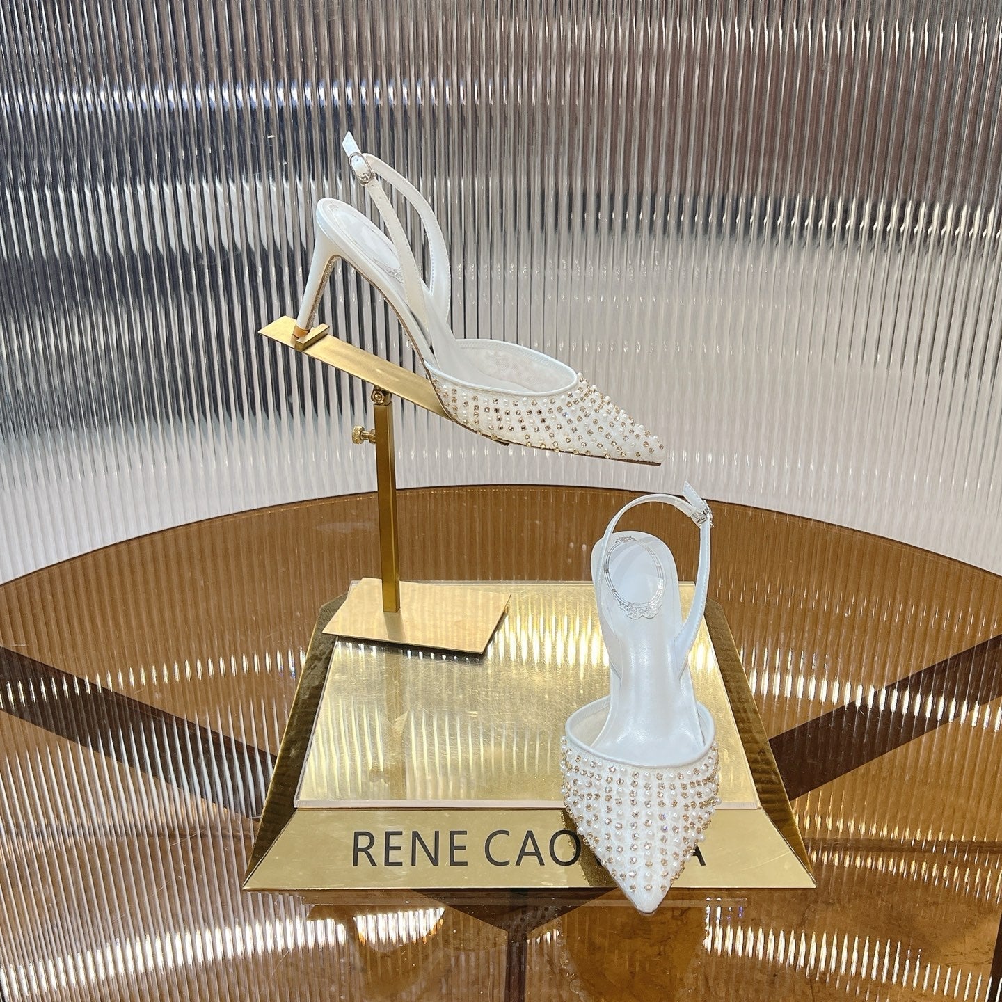 RC Slingback Shoe 7.5cm White Rhinestone Sheepskin 281985