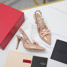 ROCKSTUD BOW SLINGBACK NUDE TAN PATENT LEATHER PUMP 95MM