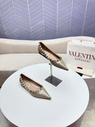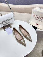 ROCKSTUD FLAT PUMP IN SAND BROWN CALFSKIN