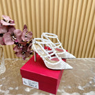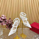 Rockstud Metallic Ankle Strap Pump 95mm White Lambskin And Lace Fabric 102093
