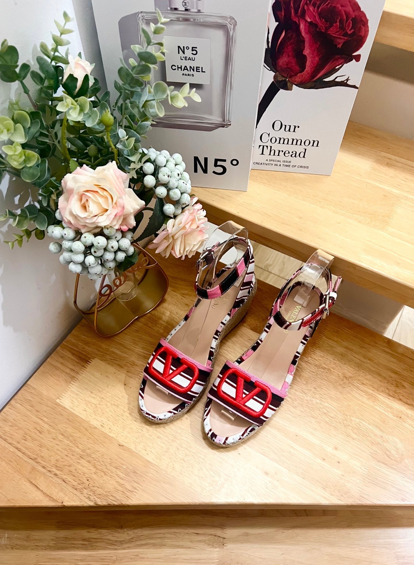Valentino Wedge Sandals Multicolor Canvas 240576