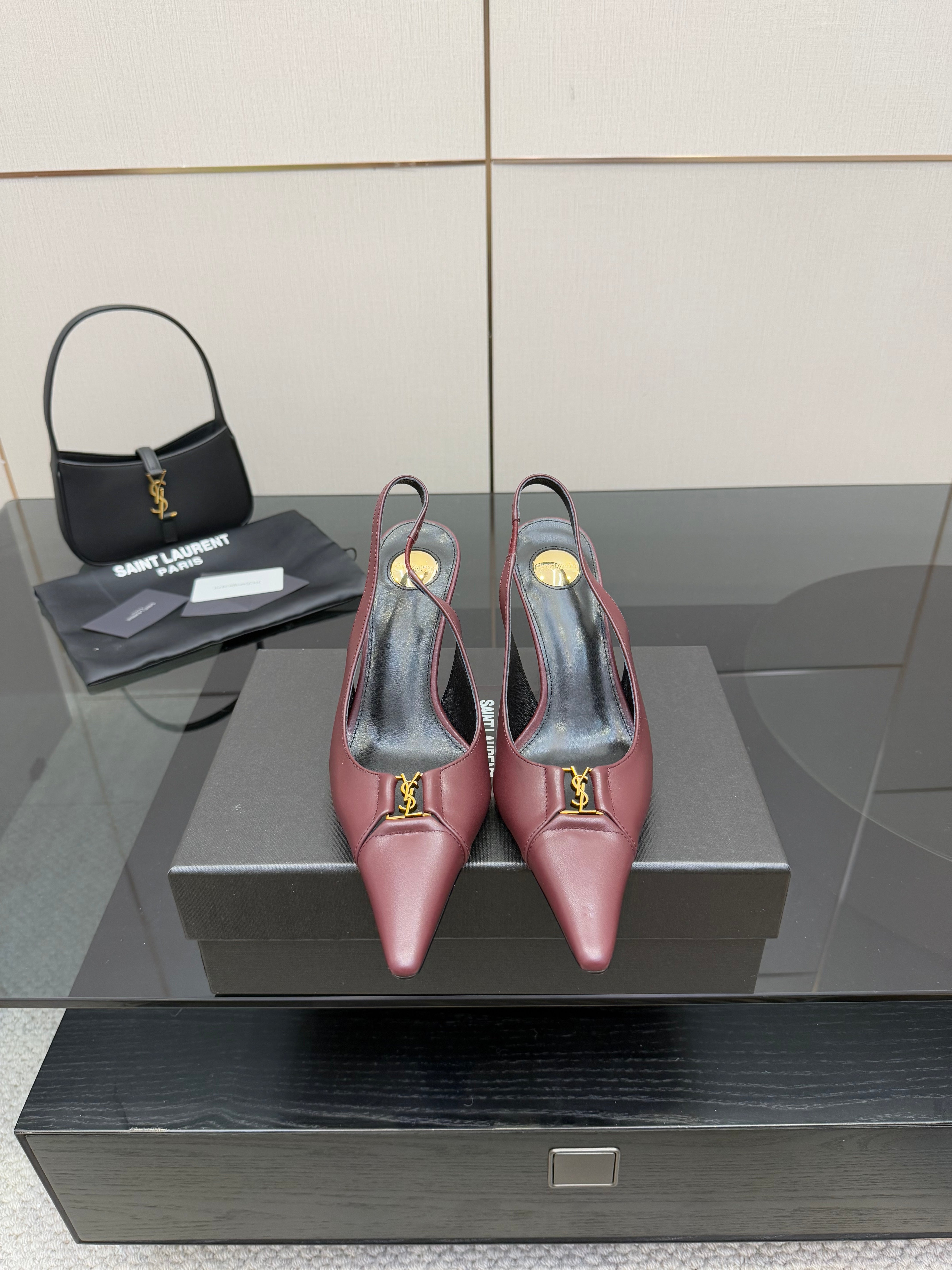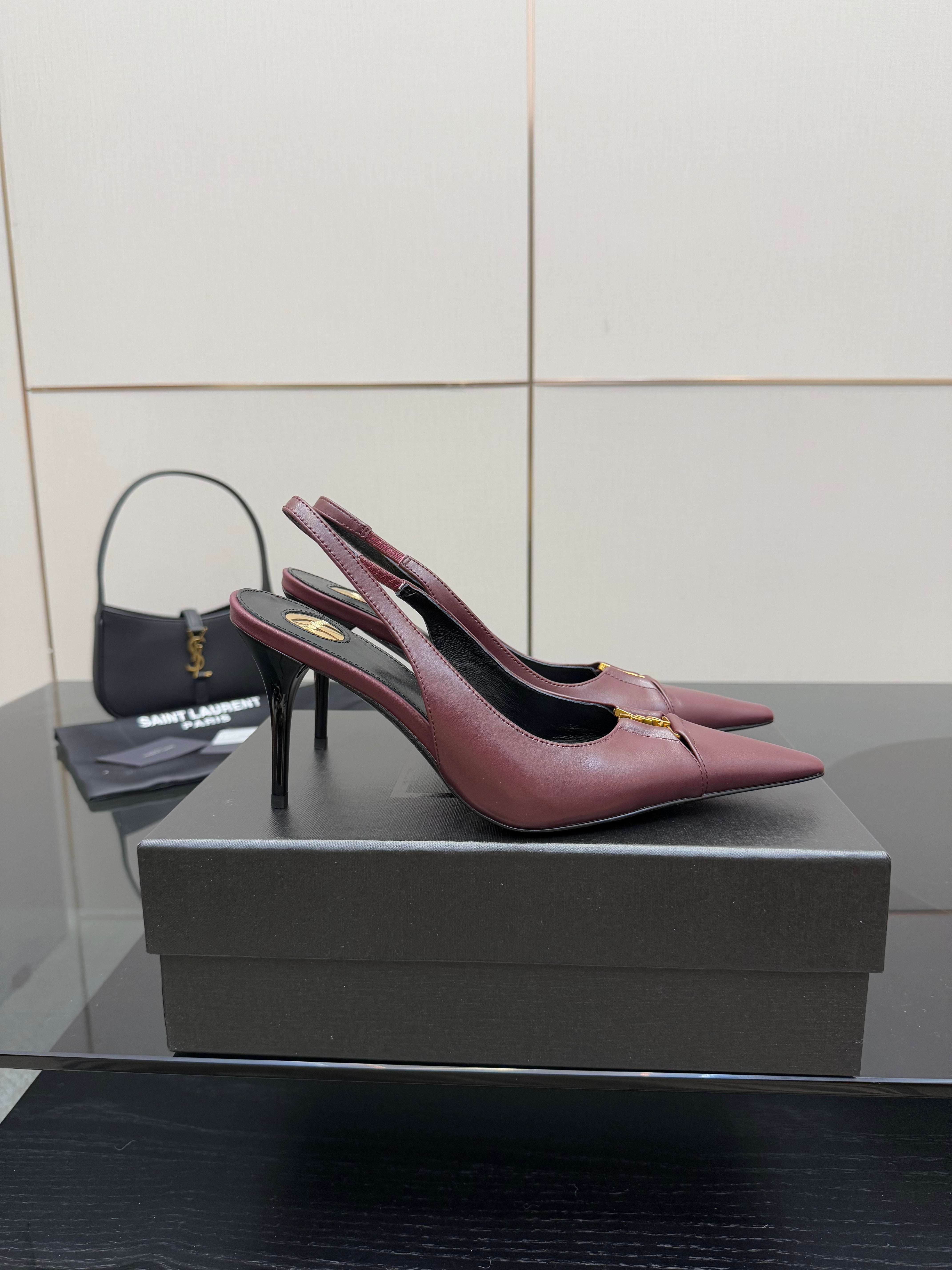 YSL 2025 Slingback Burgundy Cowhide 489913