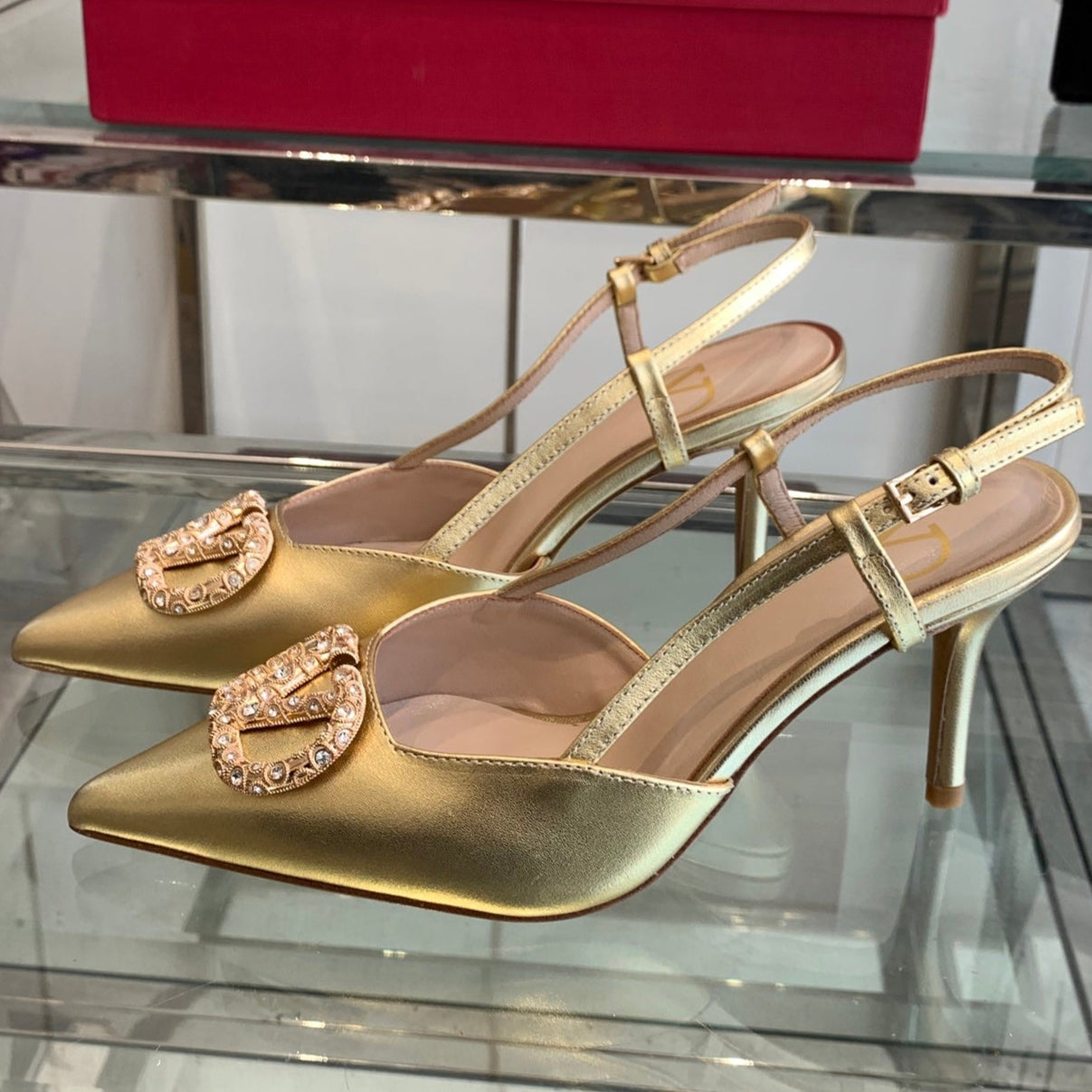 Vlogo Signature Diamond Slingback Pump Gold Calfskin