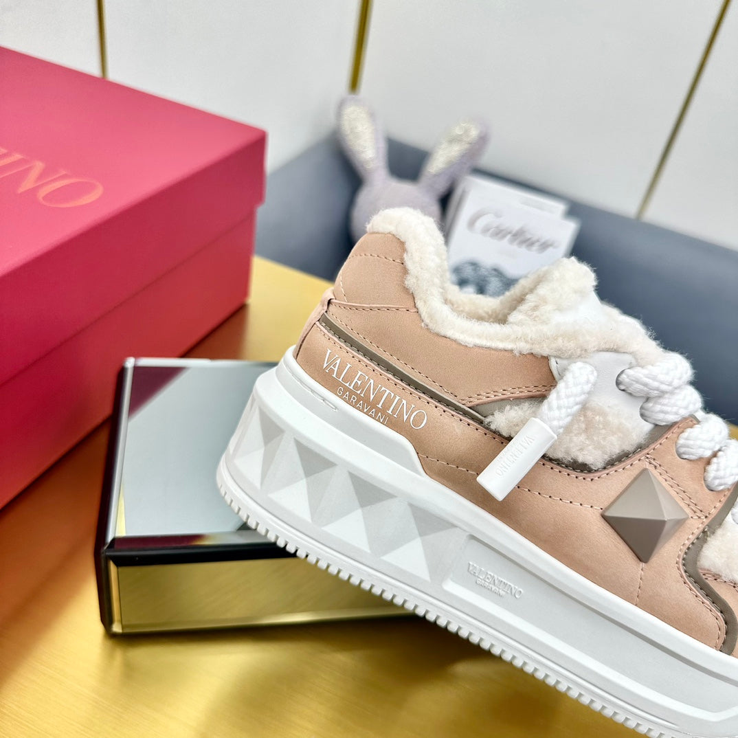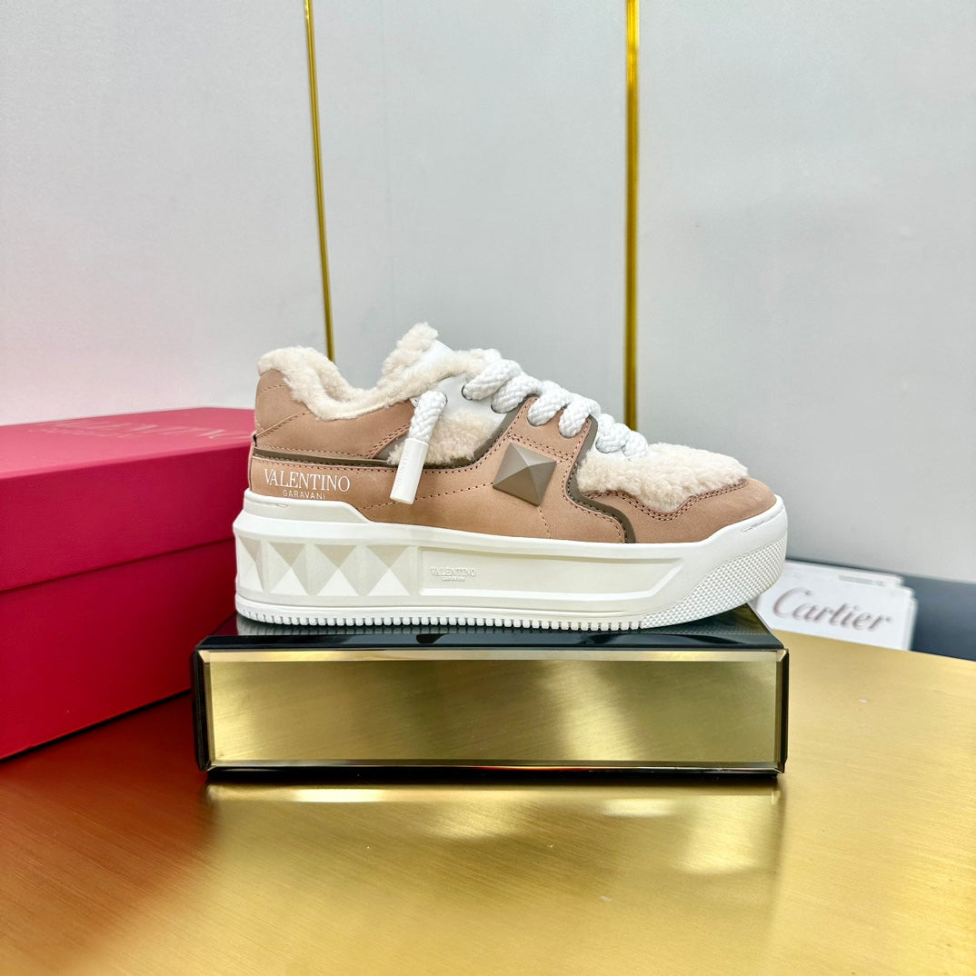 One Stud Xl Trainer 65mm In Dark Beige Mix White Suede Lined With Wool Fleece 994612