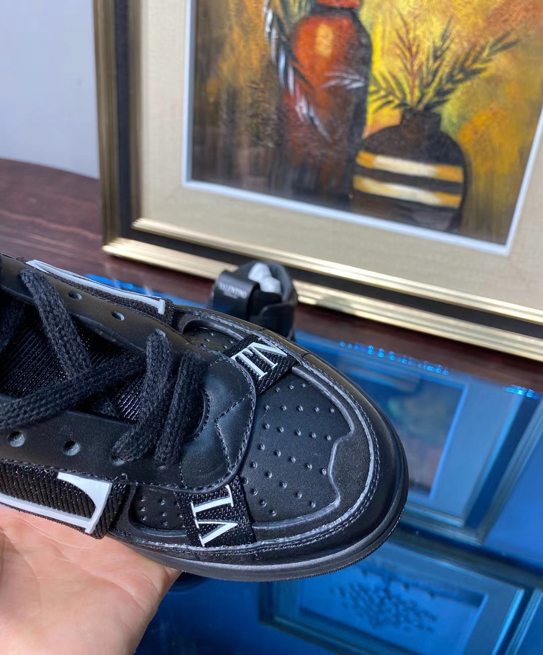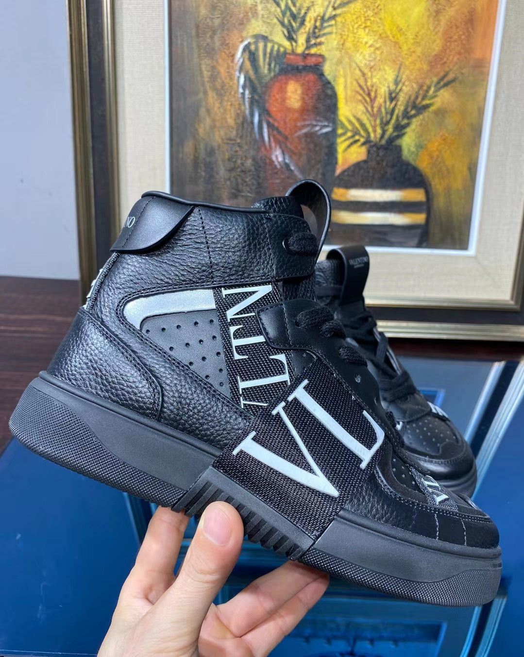 Valenti High Top VL7N Black Calfskin Canvas 993739