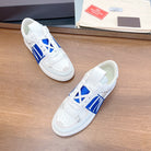 VL7N LOW-TOP WHITE CALFSKIN AND COBALT BLUE FABRIC SNEAKER WITH BANDS