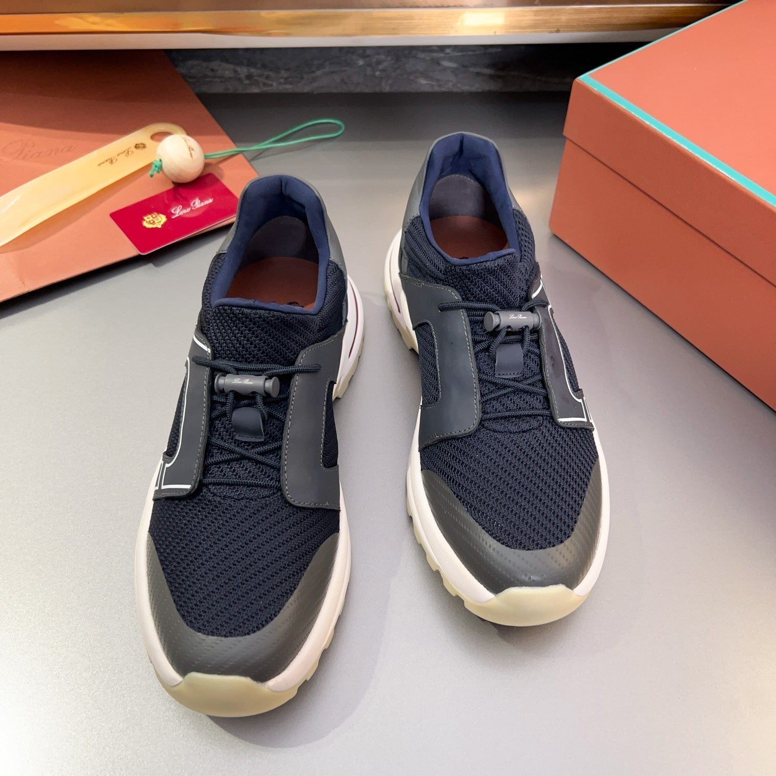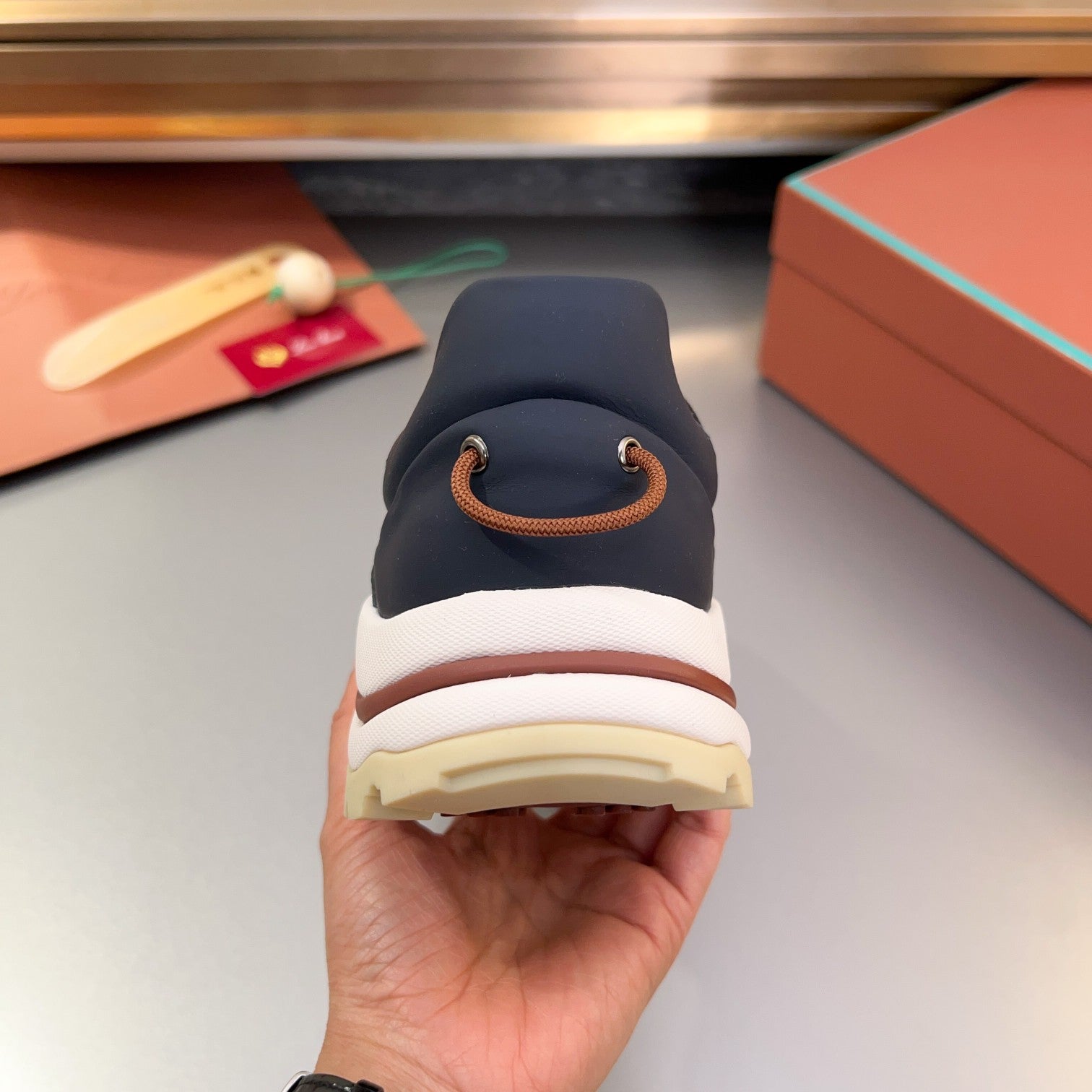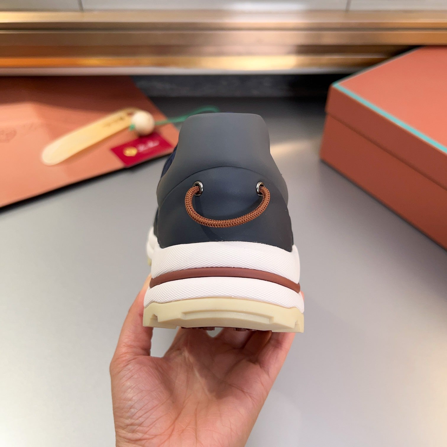 Loro Piana Tennis Walk Sneakers Suede Calf Split Navy Blue