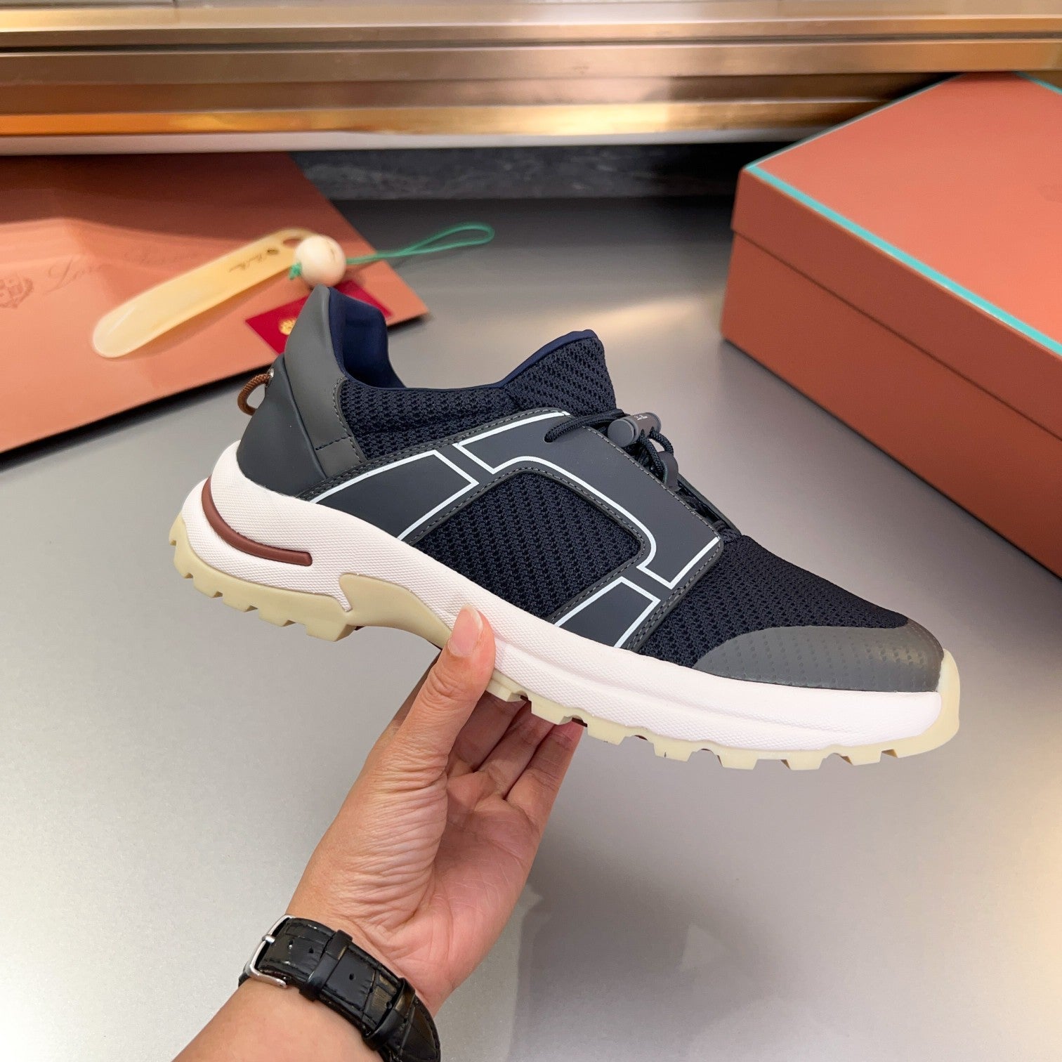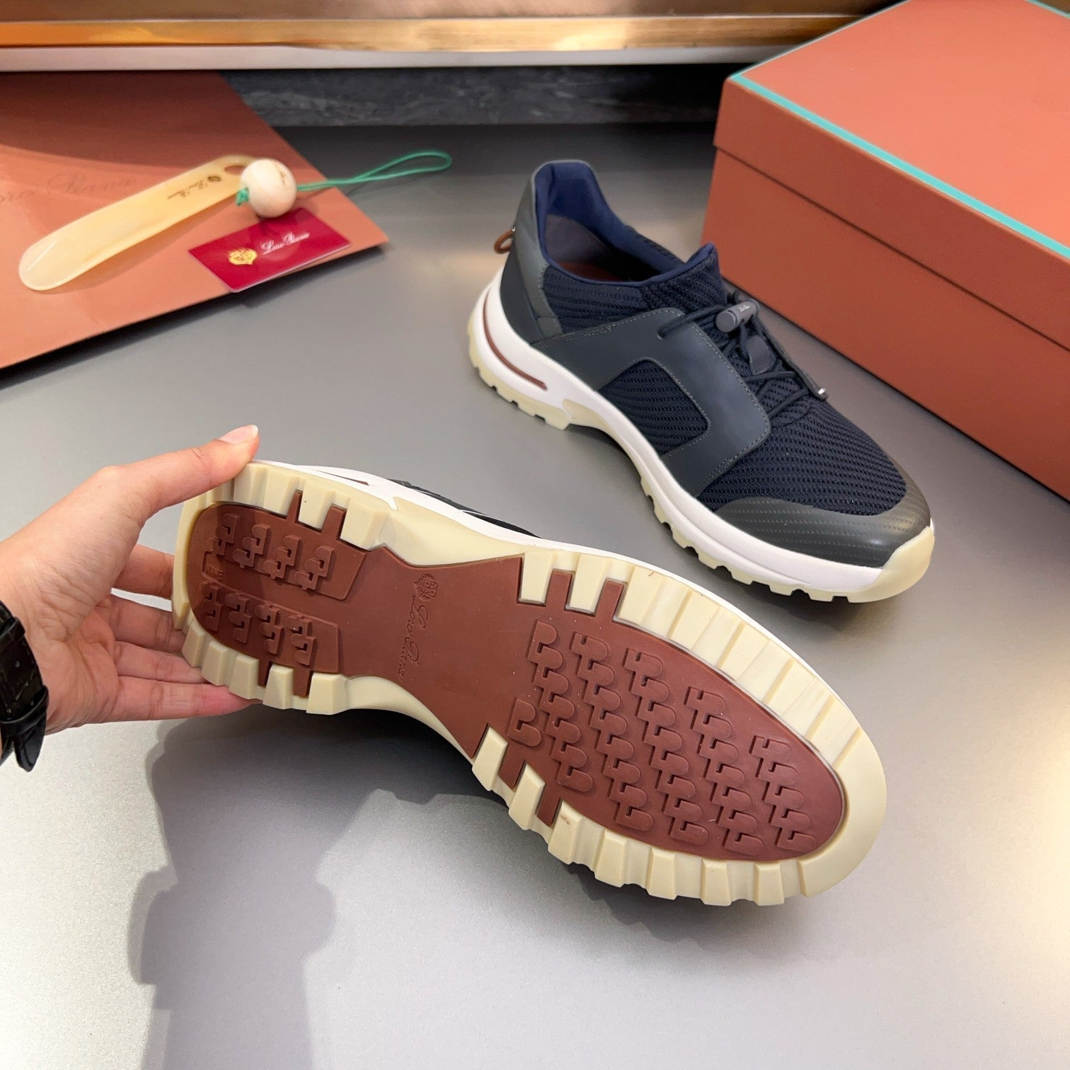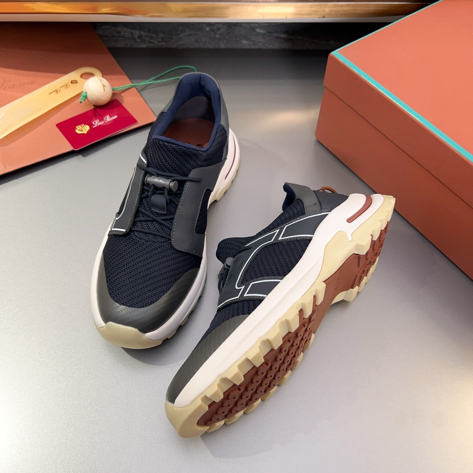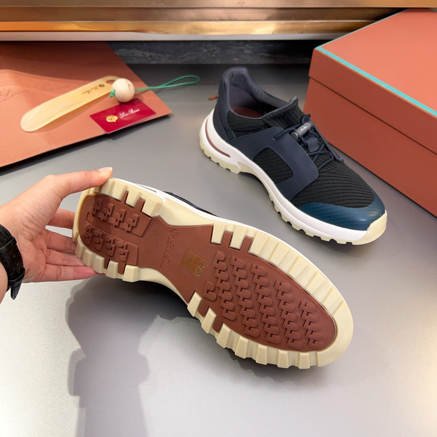 Loro Piana Tennis Walk Sneakers Suede Calf Split Navy Blue