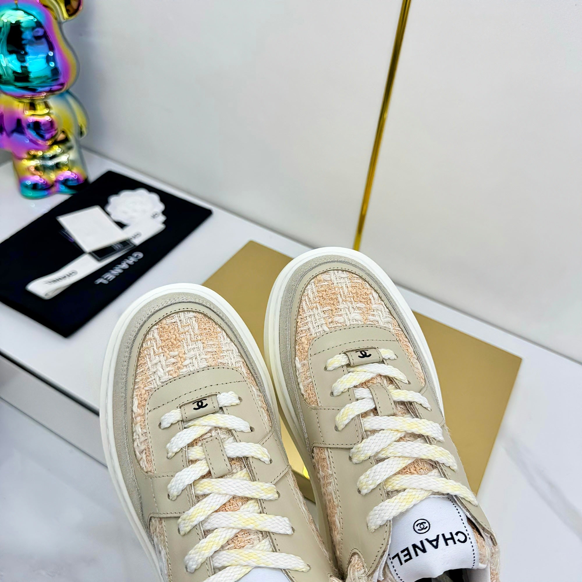 Chanel 25A Sports Shoes White Black Mix Pastel Peach 393115