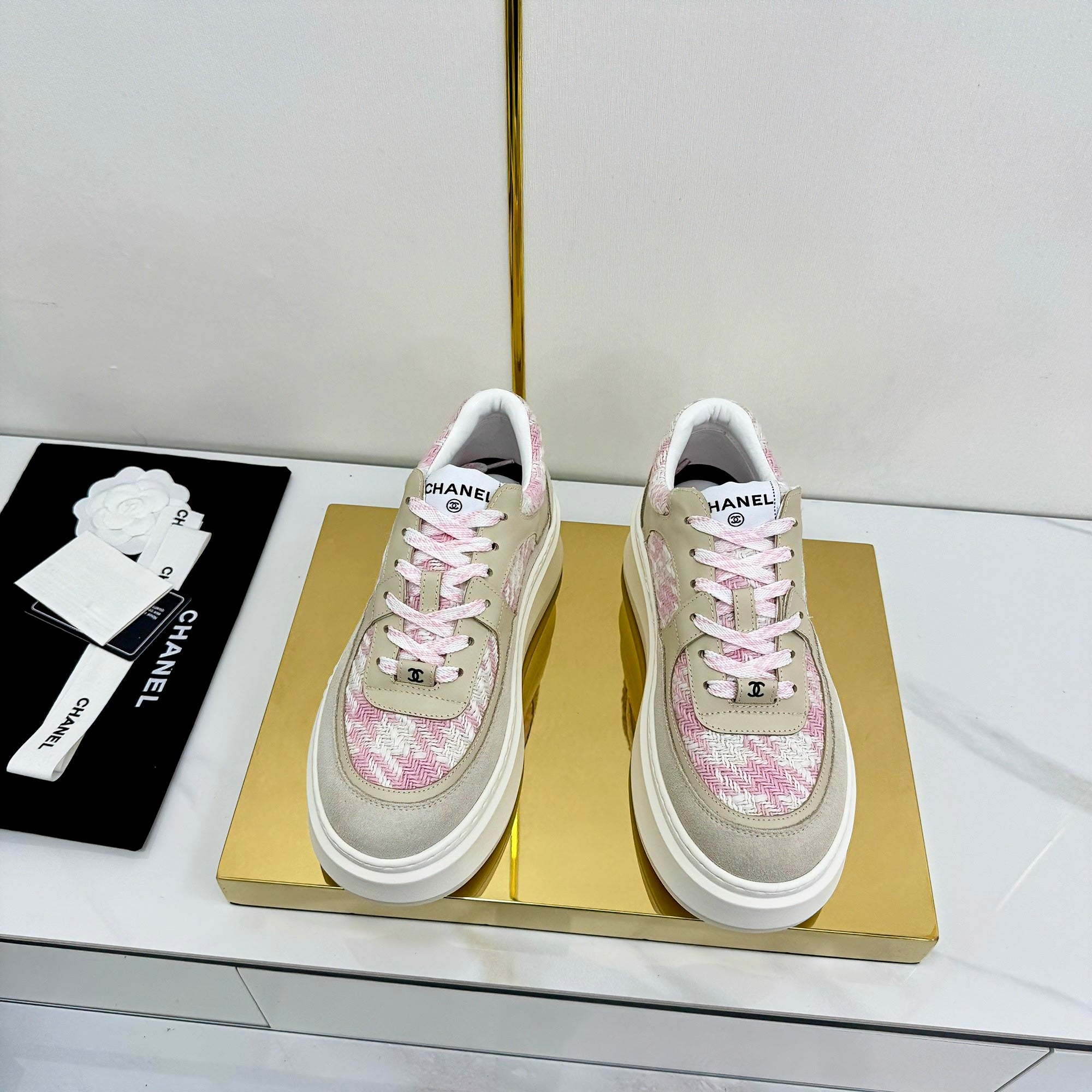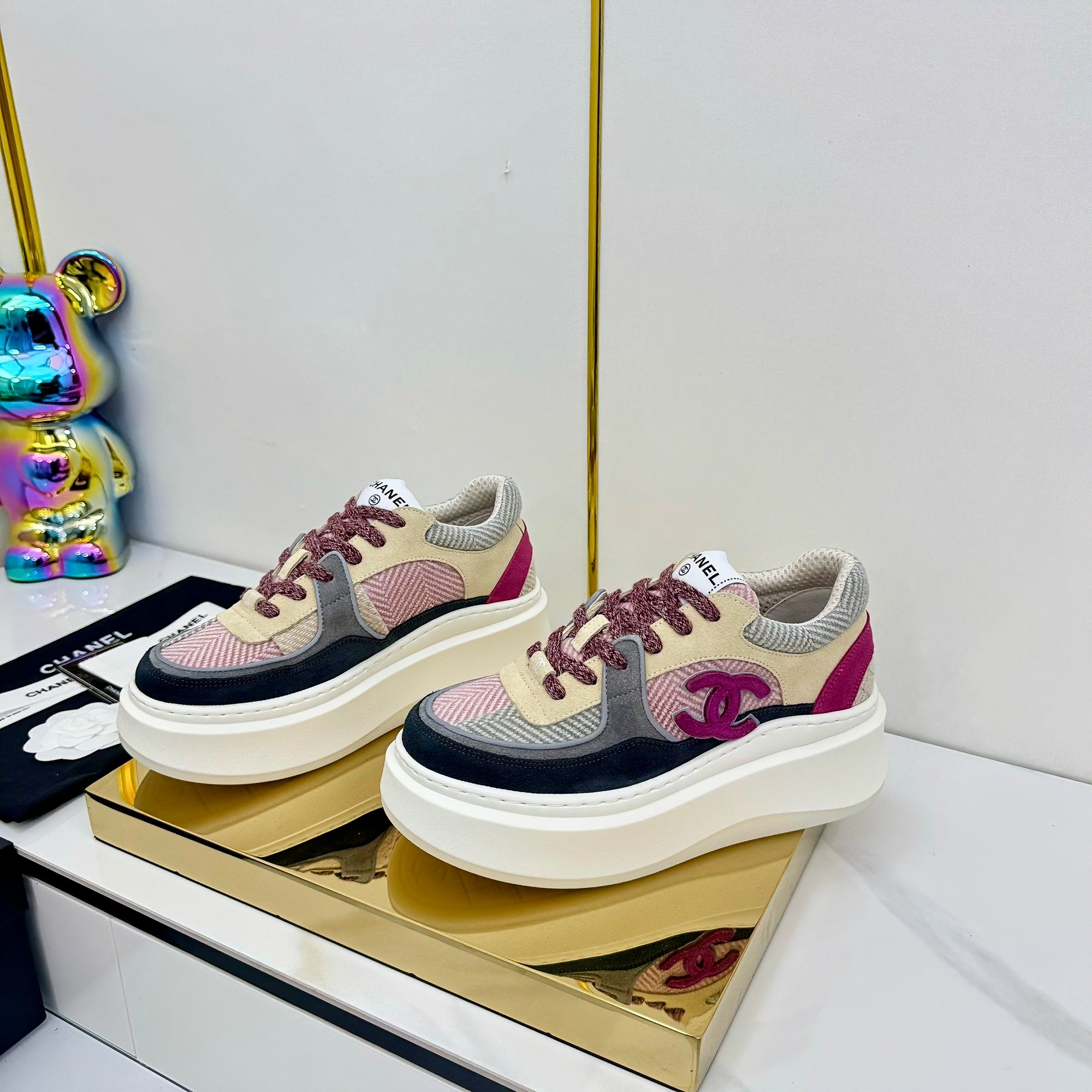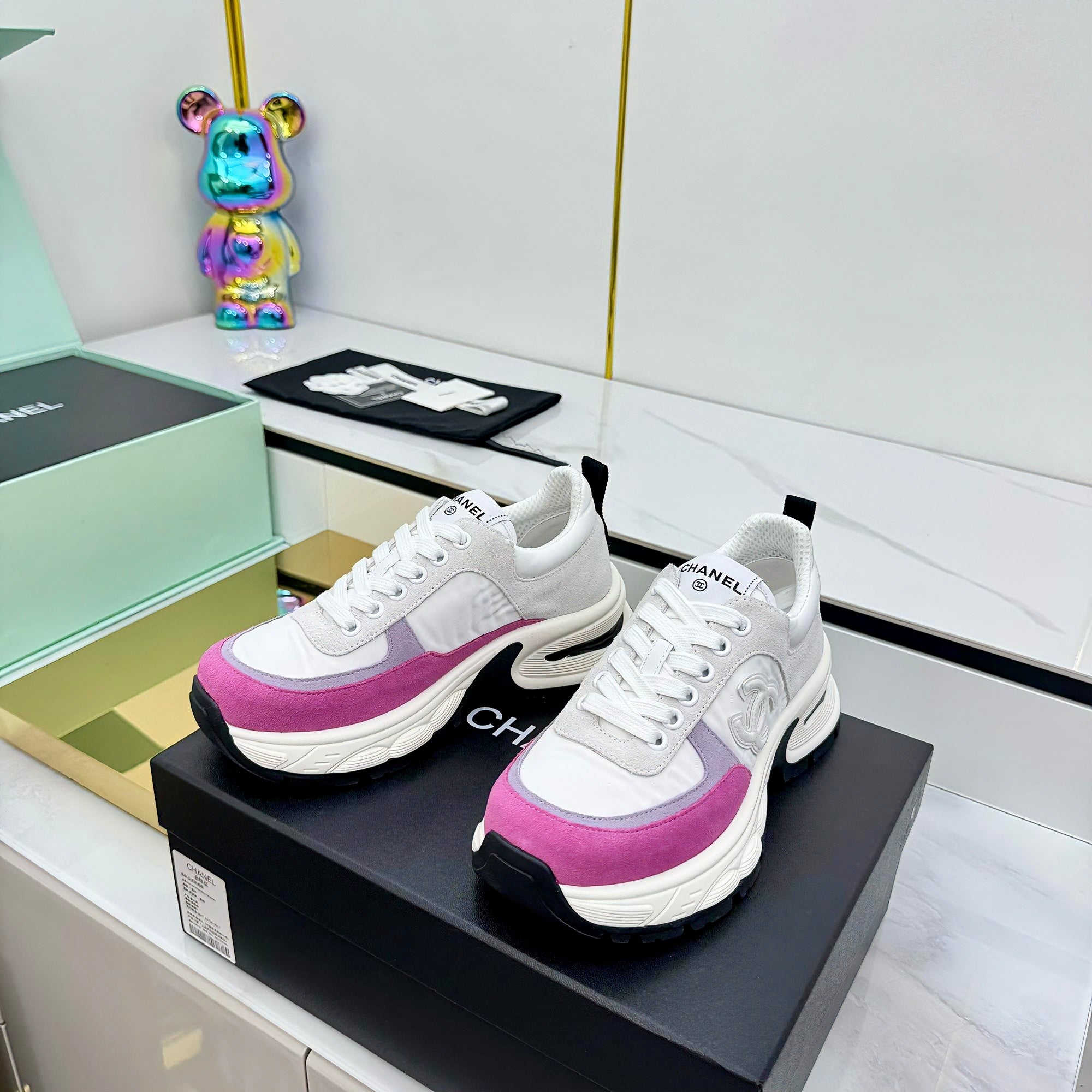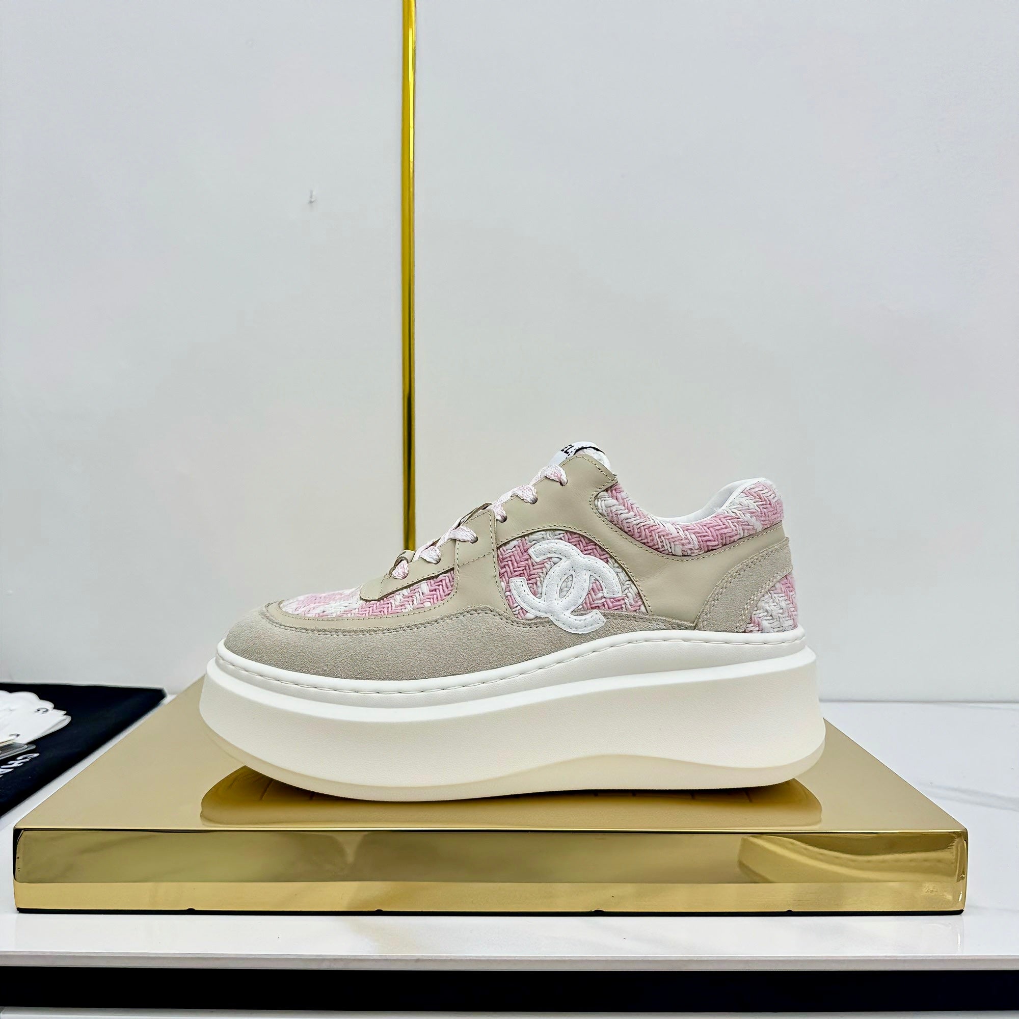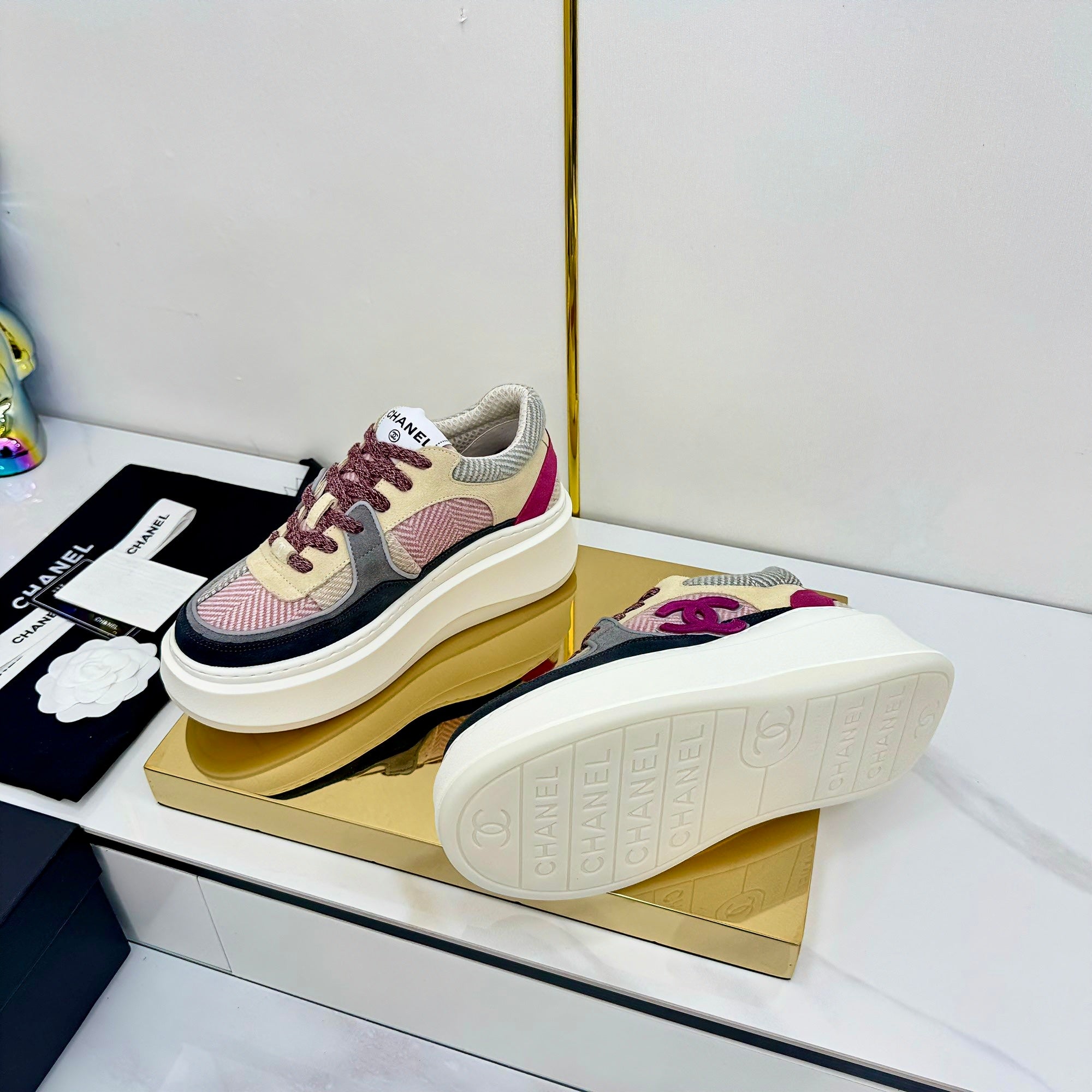 Chanel 25A Sports Shoes White Black Mix Pink Sheepskin 393113