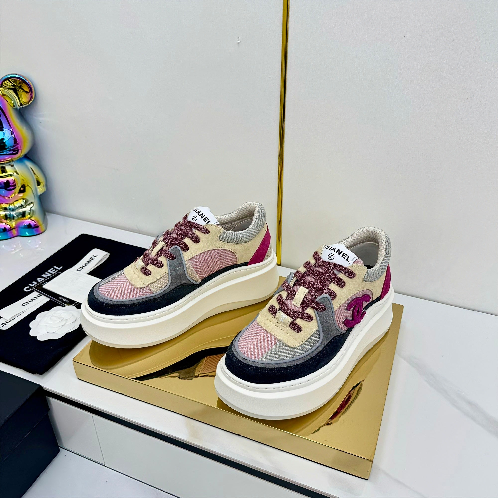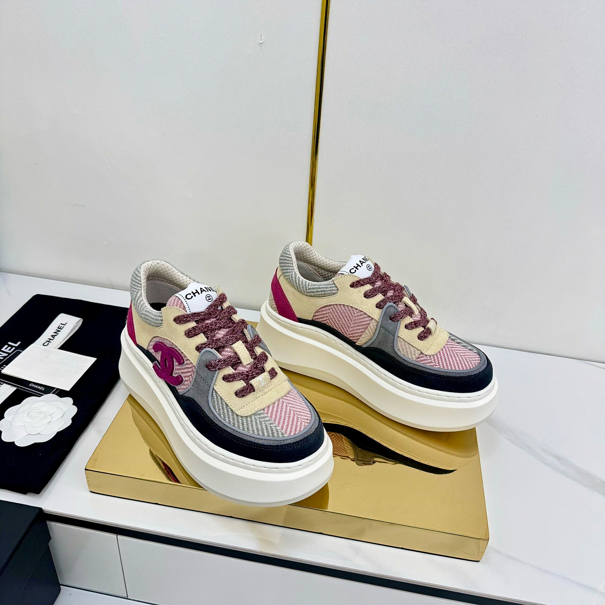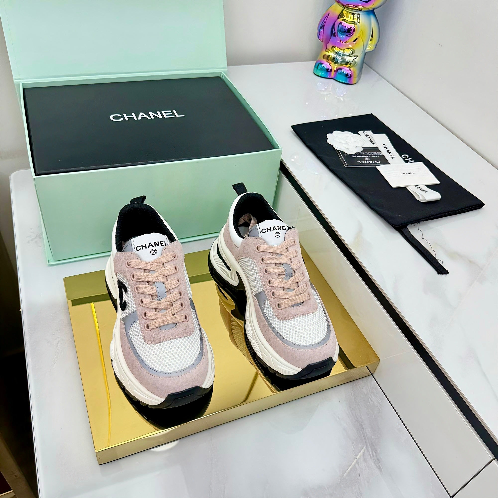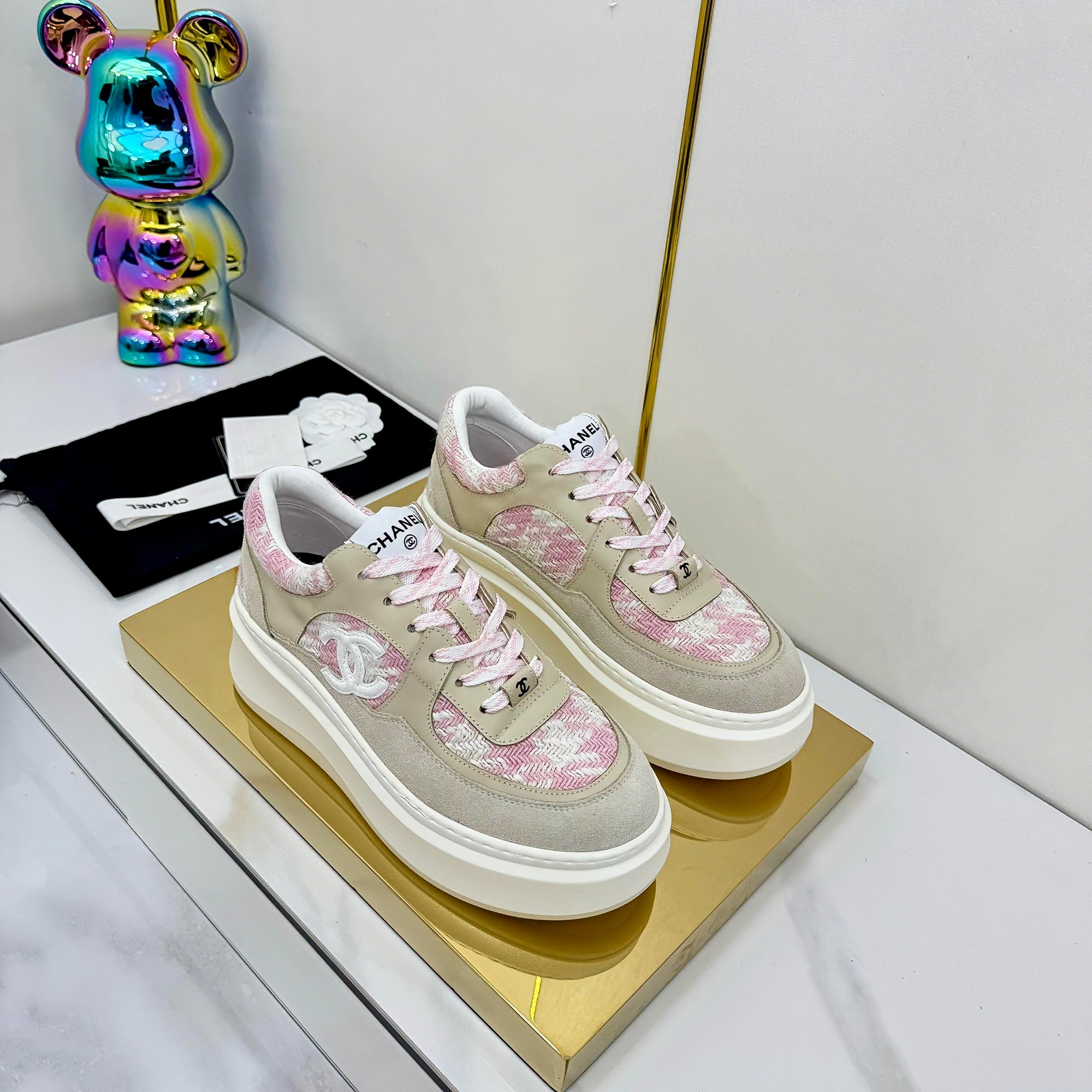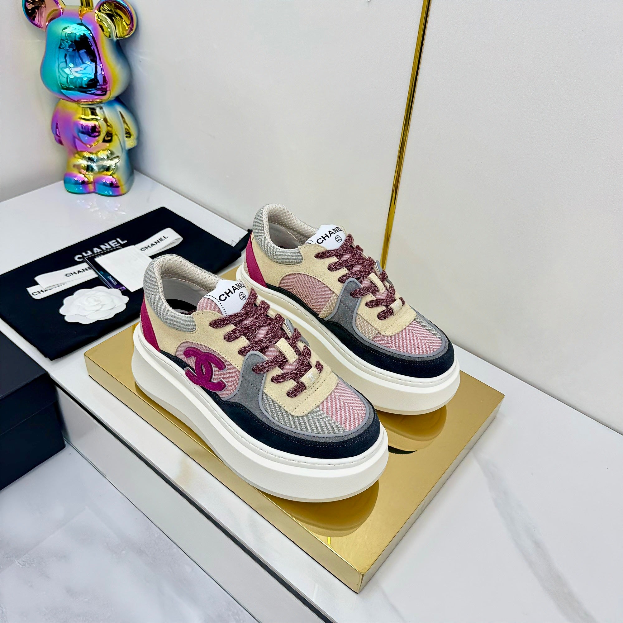 Chanel 25A Sports Shoes White Black Mix Pink Sheepskin 393113