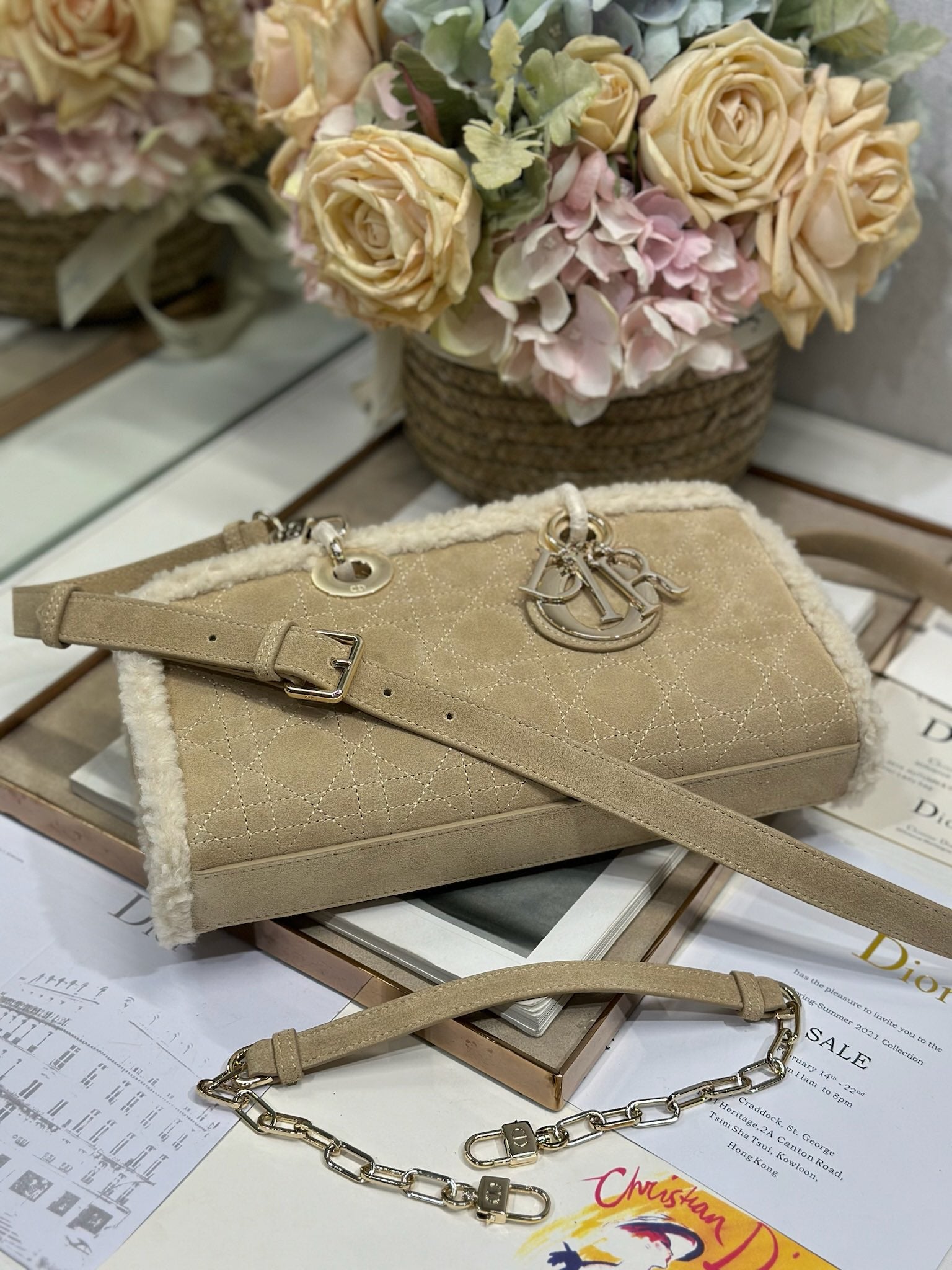 CD Lady D-Joy 26 Camel Cowhide And Fur Gold Hardware