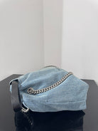 CRUSH SMALL TOTE BAG 26 IN BLUE WASHED DENIM SILVER HARDWARE