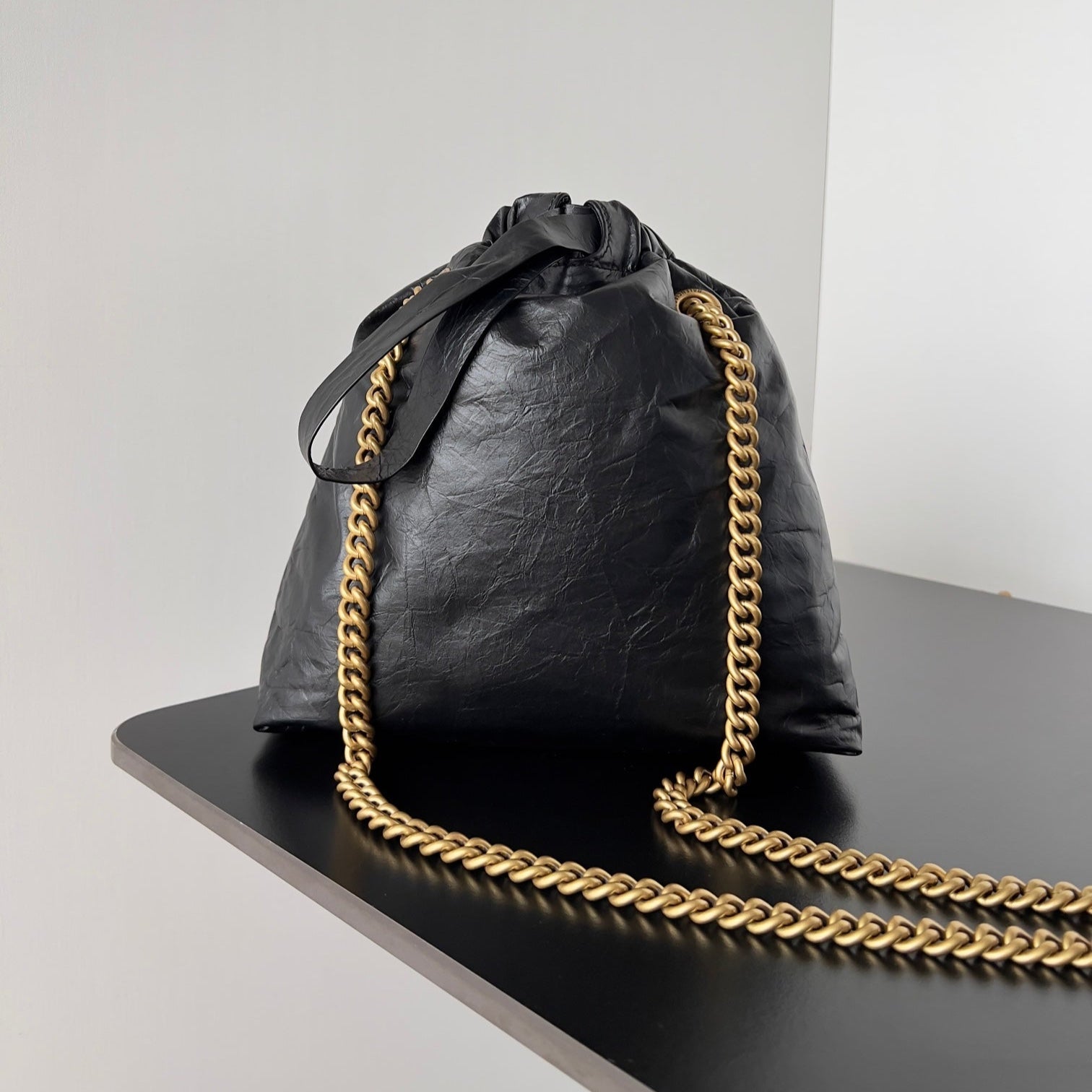 CRUSH LARGE TOTE BAG 46 IN BLACK CRUSHED CALFSKIN GOLD HARDWARE
