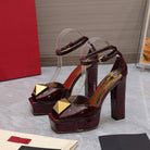 Open Toe Pump With One Stud Gold Patent Burgundy Leather 130MM