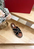 Rockstud Crisscross Espadrilles 20mm Sandal Wedges Black Tan
