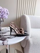 Rockstud High-heels Slingback 10cm Black and Rose Cannelle