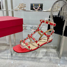 ROCKSTUD SANDAL WITH STRAPS IN CHERRY RED CALFSKIN