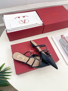 Rockstud Wispy Black Calfskin Mule 20mm