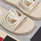 Vlogo Cut-Out Slide 20 Ivory Calfskin Beige Sole Raffia