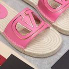 Vlogo Cut-Out Slide 20 Pink Calfskin Beige Sole Raffia
