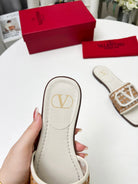 Vlogo embellished leather-trimmed raffia slides ivory