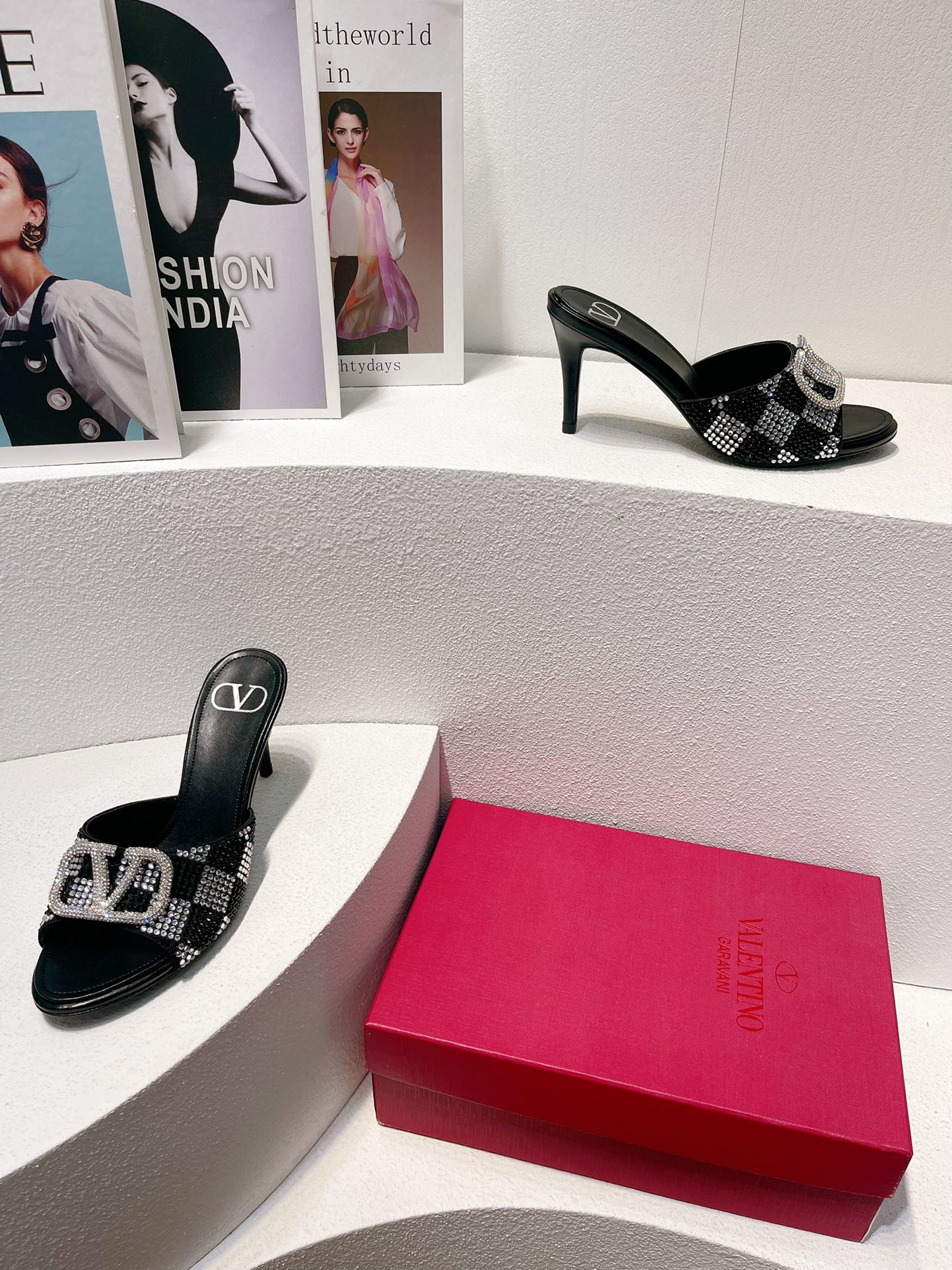 VT High Heeled Sandals Black Sheepskin 292831