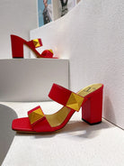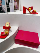 VT One Stud Leather Sandals Red Cowhide 292889