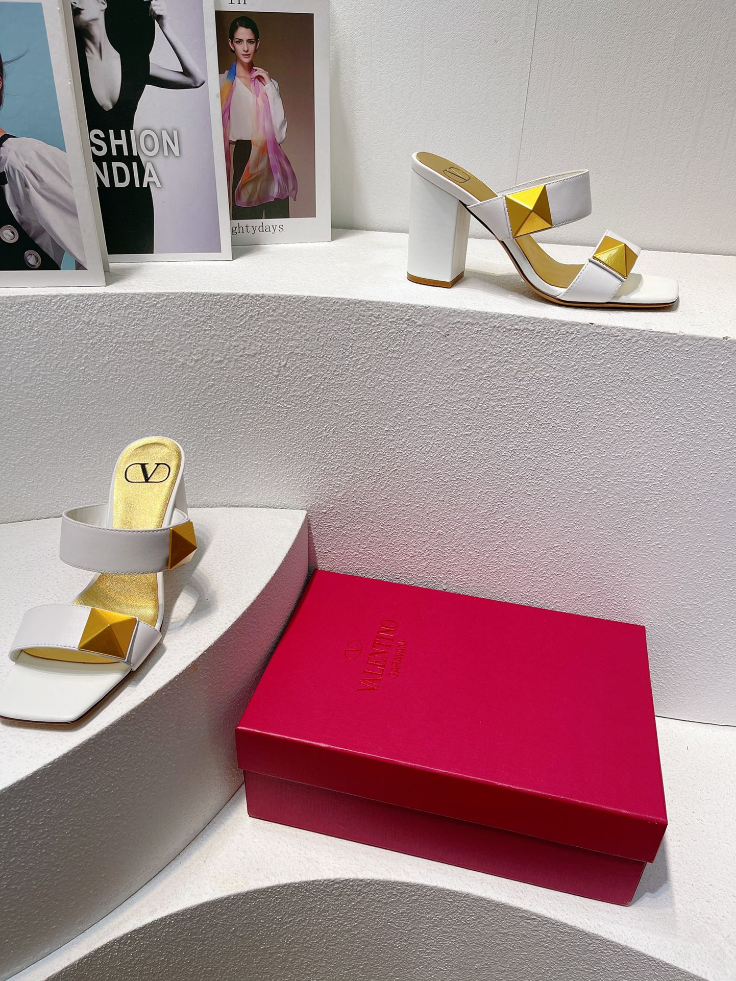VT One Stud Leather Sandals White Cowhide 292888