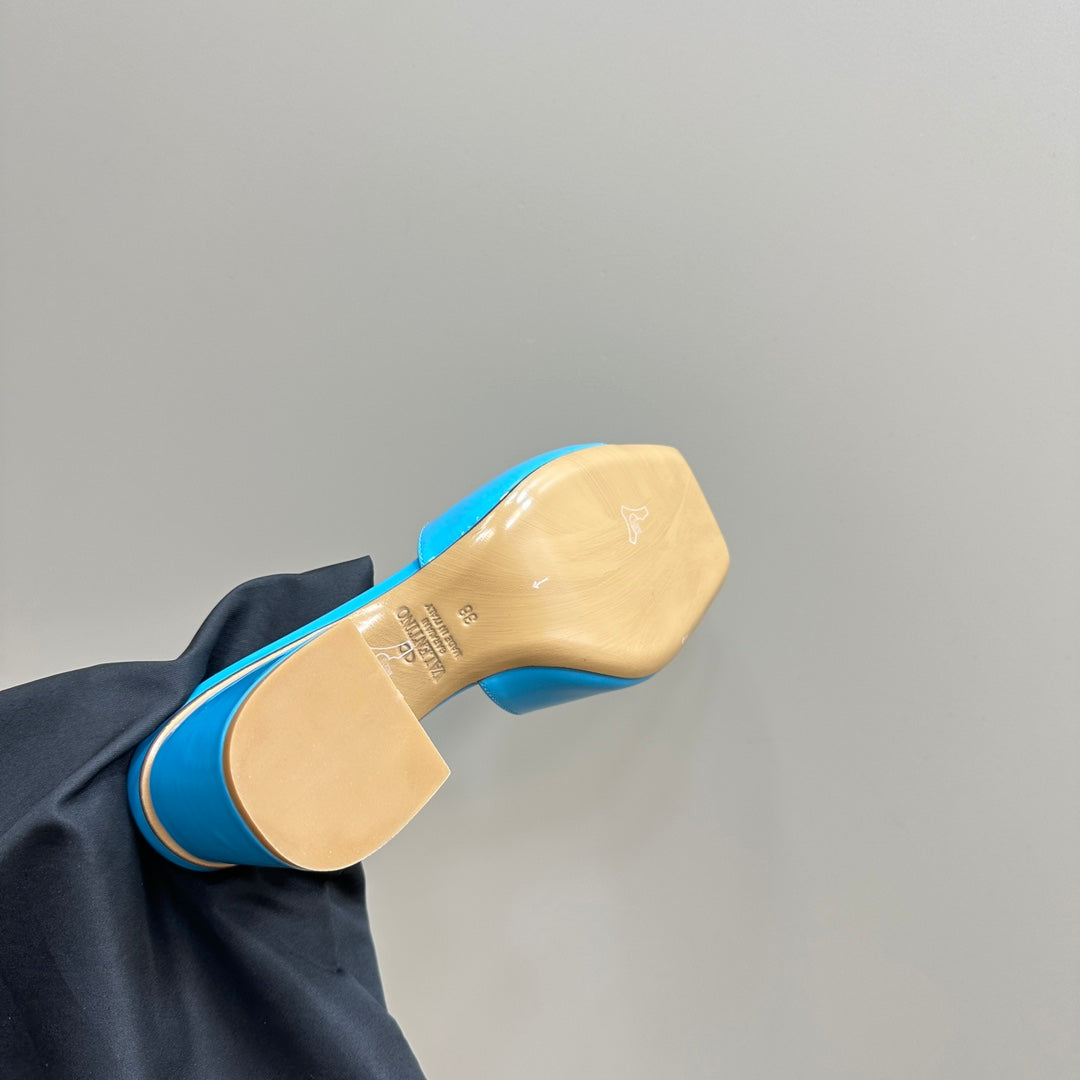 Vogo Signature High Shine Open Toe Sandals In Aqua Blue Glossy Lambskin 839819
