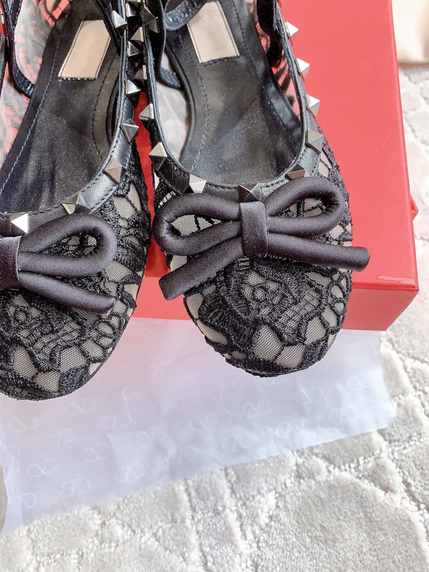 Rockstud Mesh Ballerina Black