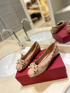 ROCKSTUD PATENT BEIGE LEATHER BALLERINA